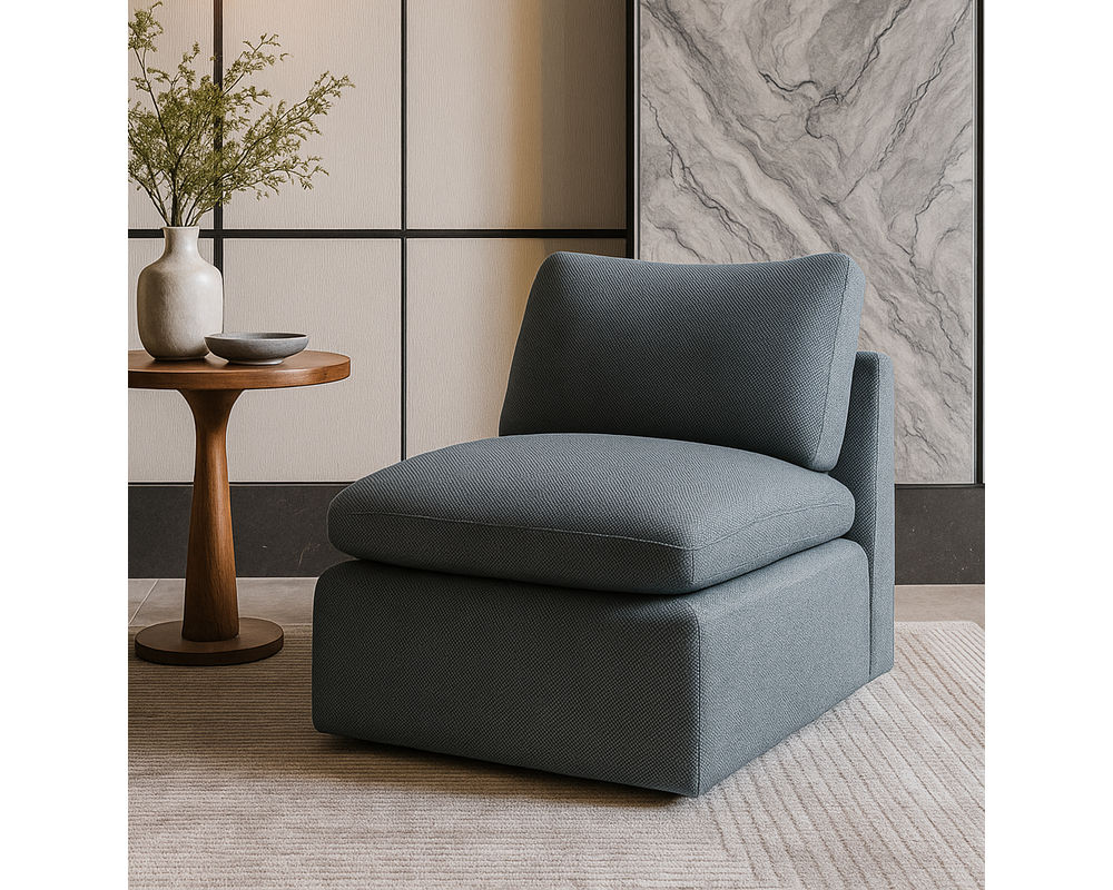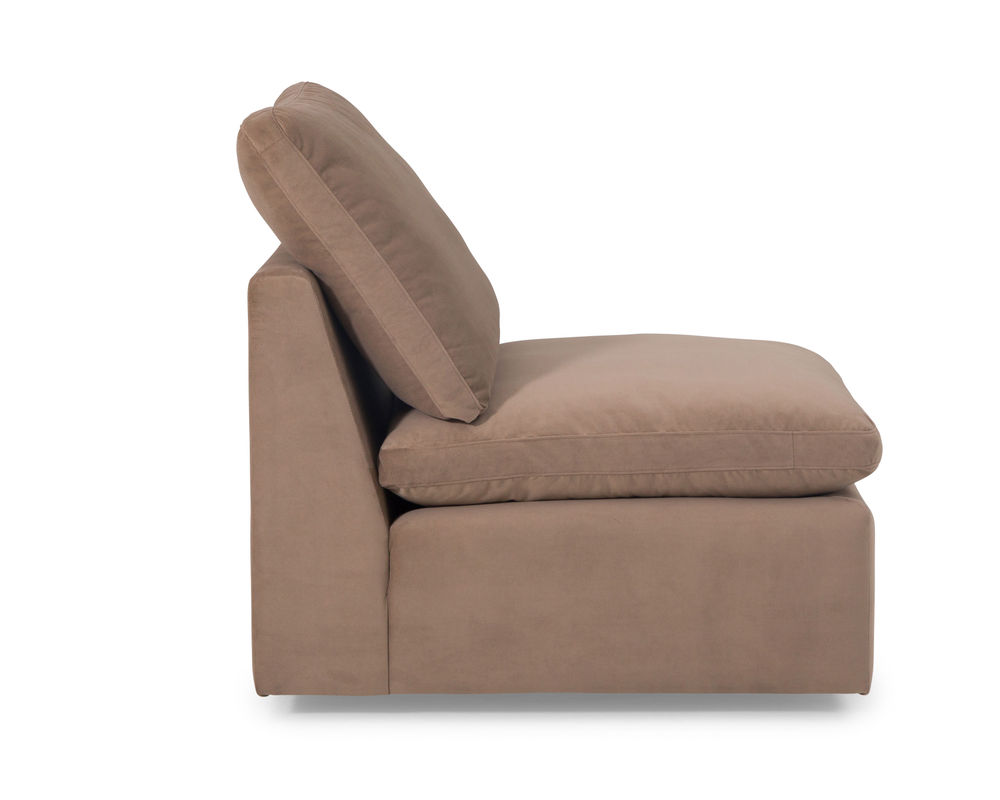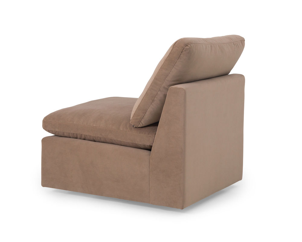One of the standout features of the Dawson armless chair is its exaggerated, deep-channeled arms. Not only do these arms add a touch of unique and trendy style, but they also provide ample support for your arms while you relax and unwind. Whether you're curling up with a glass of wine or getting lost in a good book, the deep seating and pillowy soft cushions of this chair will envelop you in luxurious comfort.