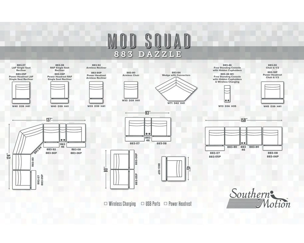 Upgrade your living room furniture with the Dazzle 883 Reclining Sectional. Its contemporary design, wide seats, and available power headrest make it a must-have for any modern home.