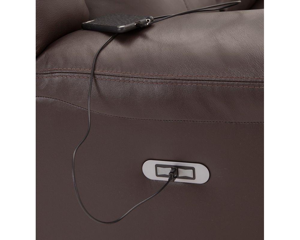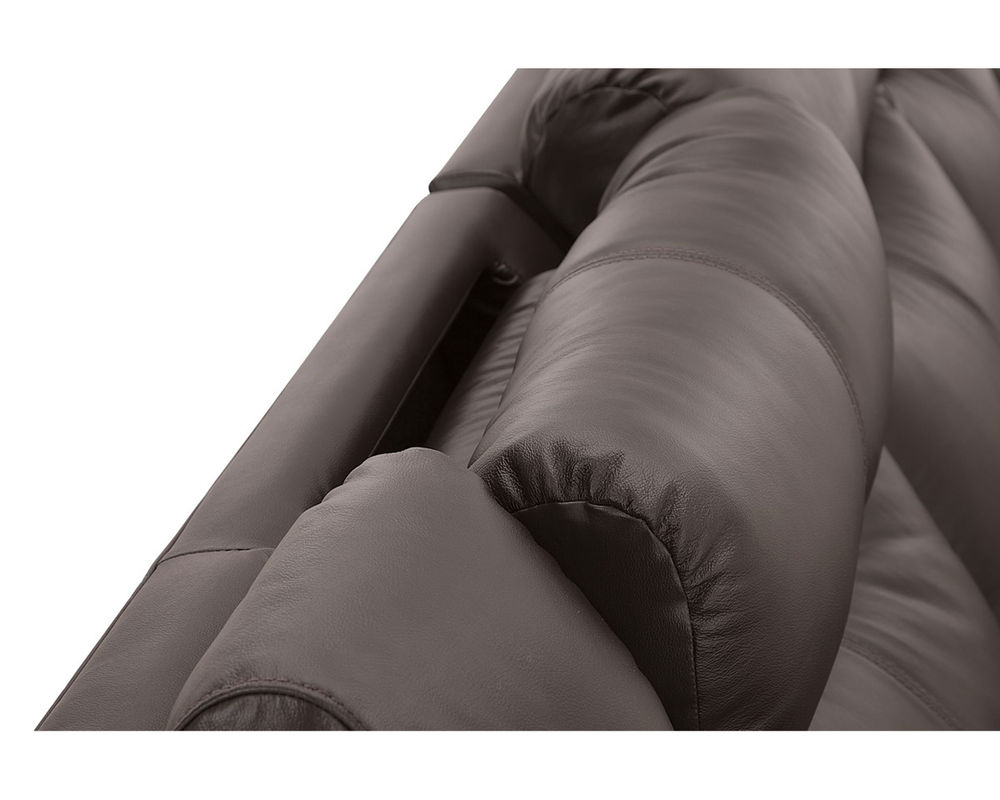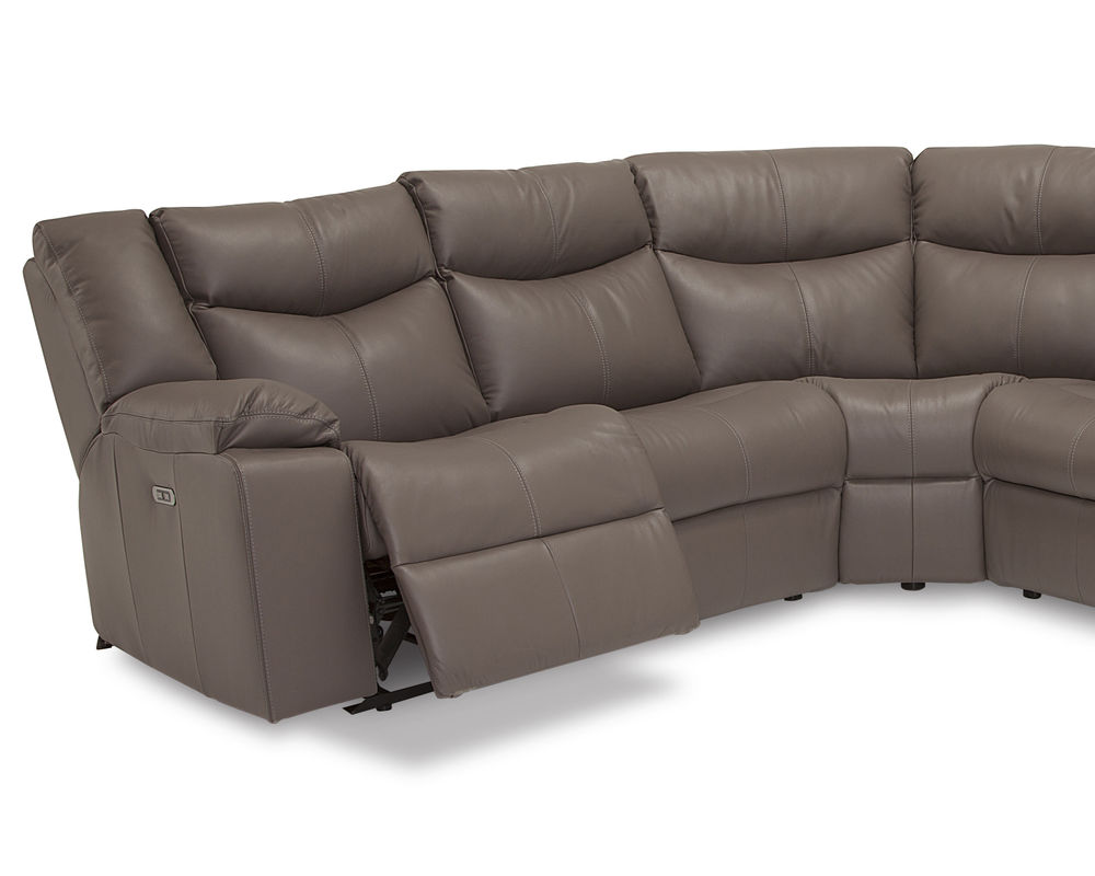 The Delta reclining sectional is soft, comfortable and customizable. Designed to seat the entire family, the collection features power recline and a power headrest, with a fully padded arm, making it easy to achieve your desired comfort. Full chaise bucket seating supports your entire body in the full recline position, while the plush back and fully padded wing surround you in soft support. The recline and power headrest function are activated with a brushed metal, two button switch with integrated USB charging. By positioning the power headrest, it is now possible to view a TV from the full recline position, allowing complete comfort and relaxation. A perfect family room option, the Delta collection can be customized to suit the needs of a high functioning living space.