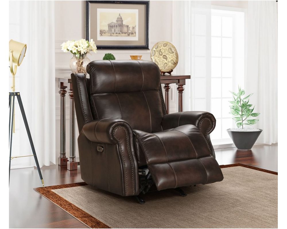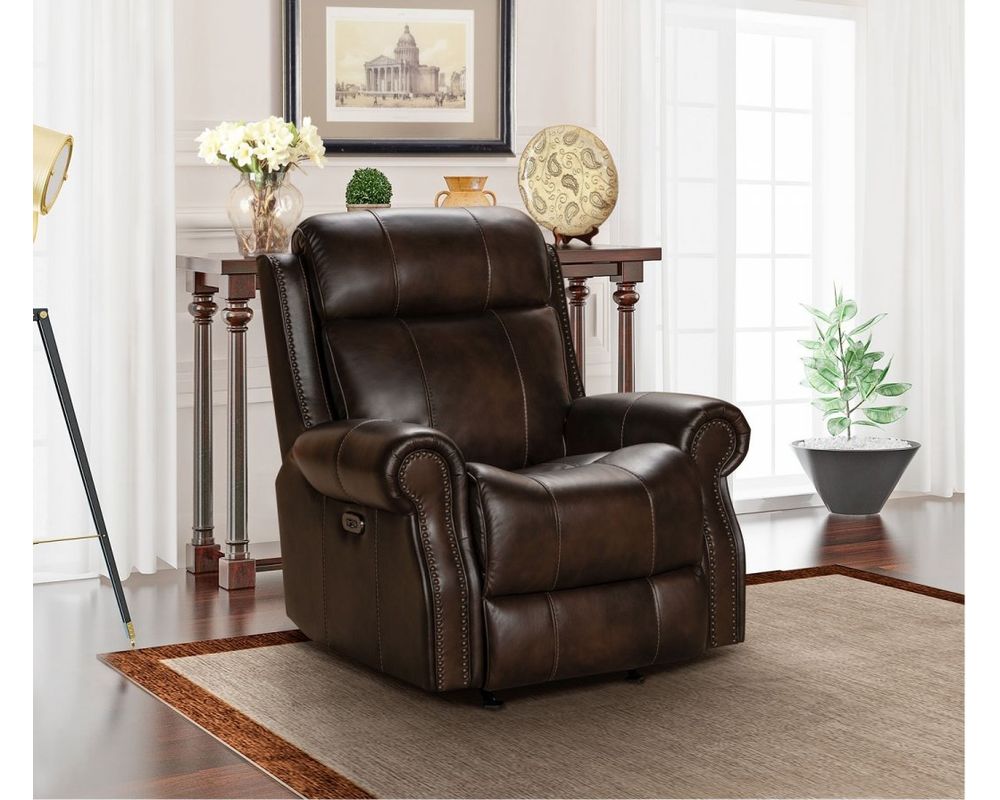 Crafted with the finest materials, the Demara Recliner boasts top-grain leather everywhere your body touches. This not only adds a touch of elegance and sophistication to your home, but it also ensures durability and longevity. The nail head trim accents on the wings and front of the arms add a classic and stylish touch to the overall design, making it a luxurious and durable addition to your home.