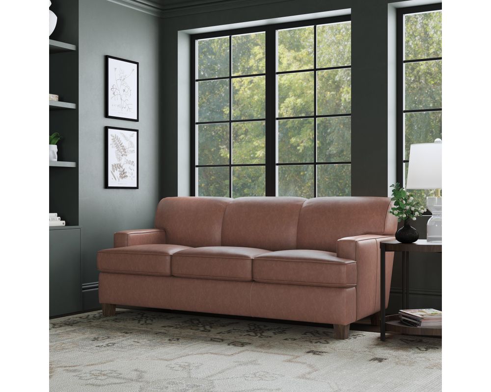 Indulge in the embrace of timeless elegance with the Dempsey Leather Sofa, a design that balances plush comfort with sophisticated tailoring. Its gently curved tight back and square arms deliver a perfect blend of structure and softness, while subtle welt detailing adds an elevated touch.