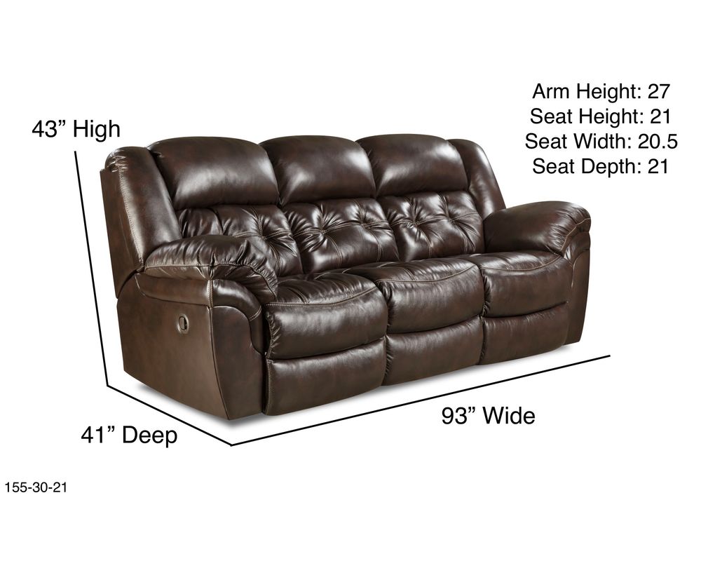 Denver 93" Double Reclining Sofa Experience the perfect blend of style, durability, and full-body comfort with the Denver Double Reclining Sofa. Measuring a generous 93 inches in width, this sofa is designed to provide ample space for you and your guests while delivering unmatched support and relaxation. With its elegant double-needle accent stitching and classic tufted detailing, the Denver adds a touch of sophistication to any living space, making it both a statement piece and the most comfortable seat in the house.