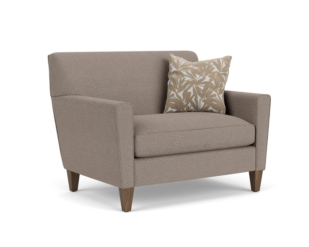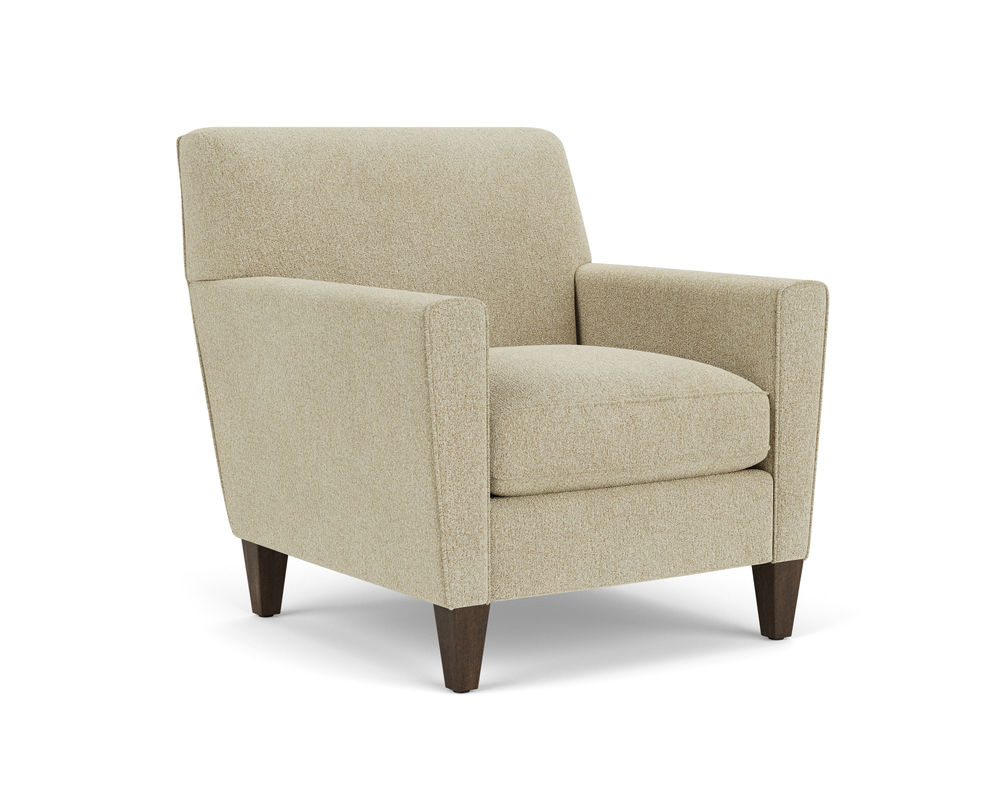 Slim tapered arms and a tightly padded back make Digby feel roomy even in smaller areas. Its exclamation-point arm is finished with a tall tapered leg to add visual height, and the tight back enhances the architectural feel of this style while offering surprising comfort. Digby accent chair is available in over 150 fabrics.