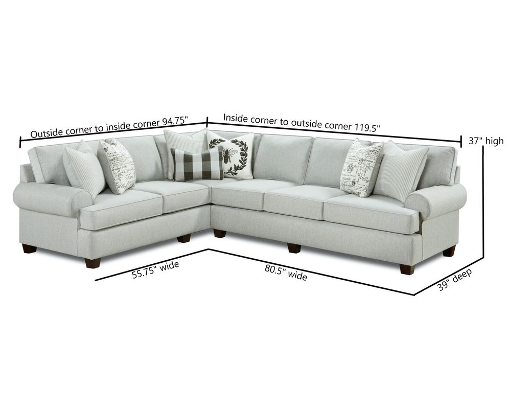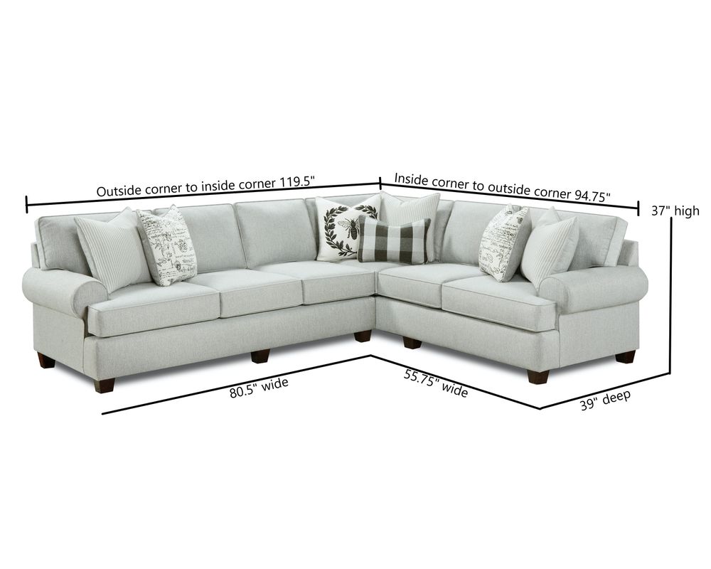 Introducing the versatile Dizzy Iron two-piece sectional, a stunning addition to any living room. This transitional sectional is available in a right or left-arm-facing sofa and a left or right-arm-facing loveseat, giving you the power to design your space as you like. Its 90-degree corner wedge adds a unique touch to the design, further enhancing its adaptability.