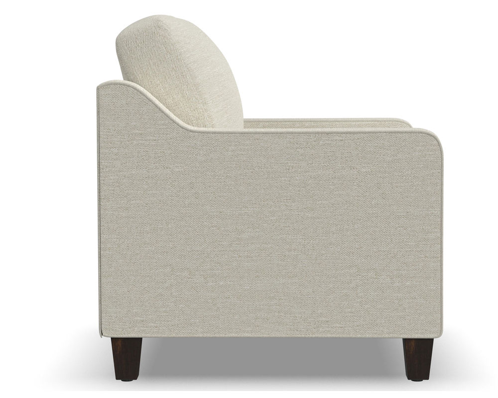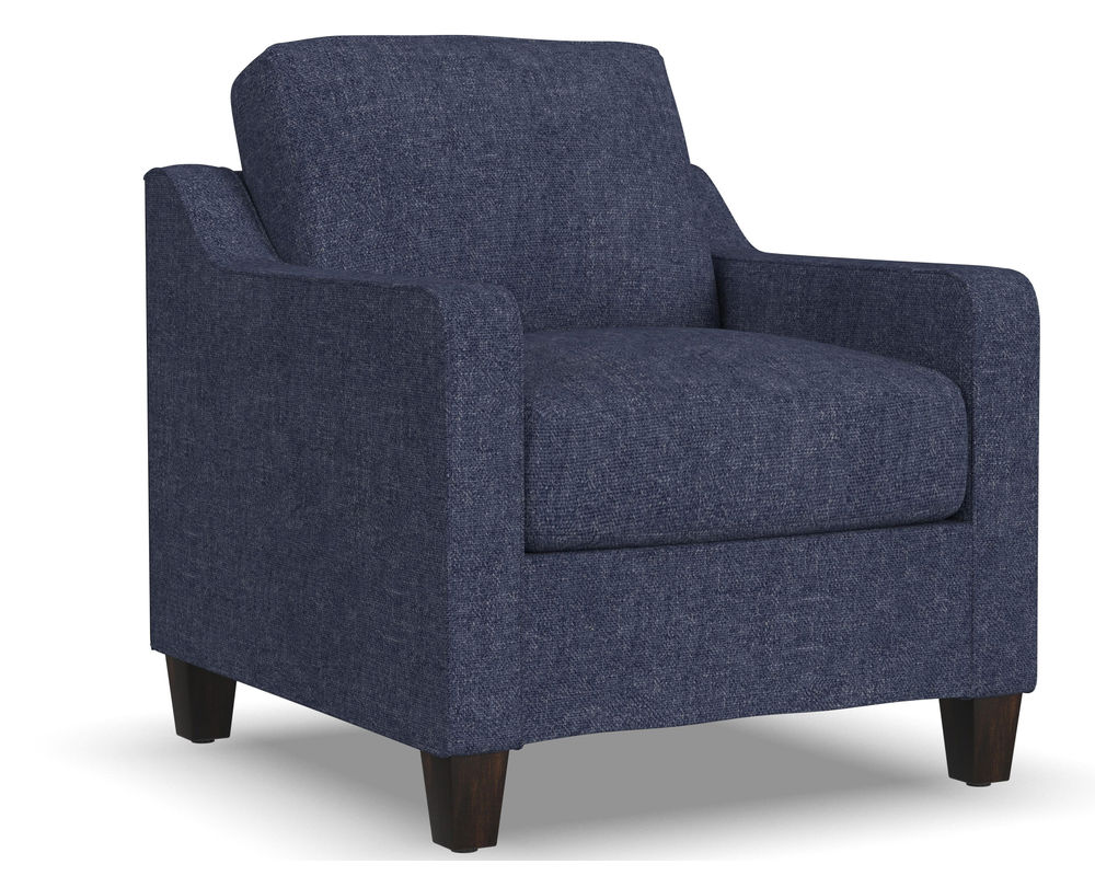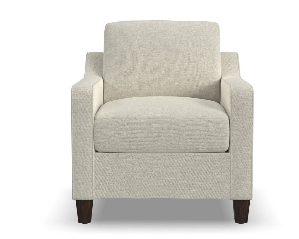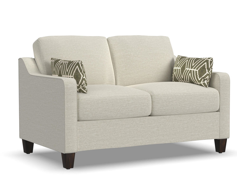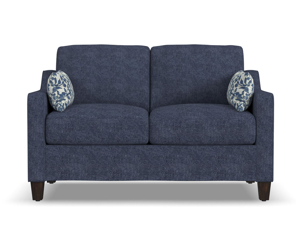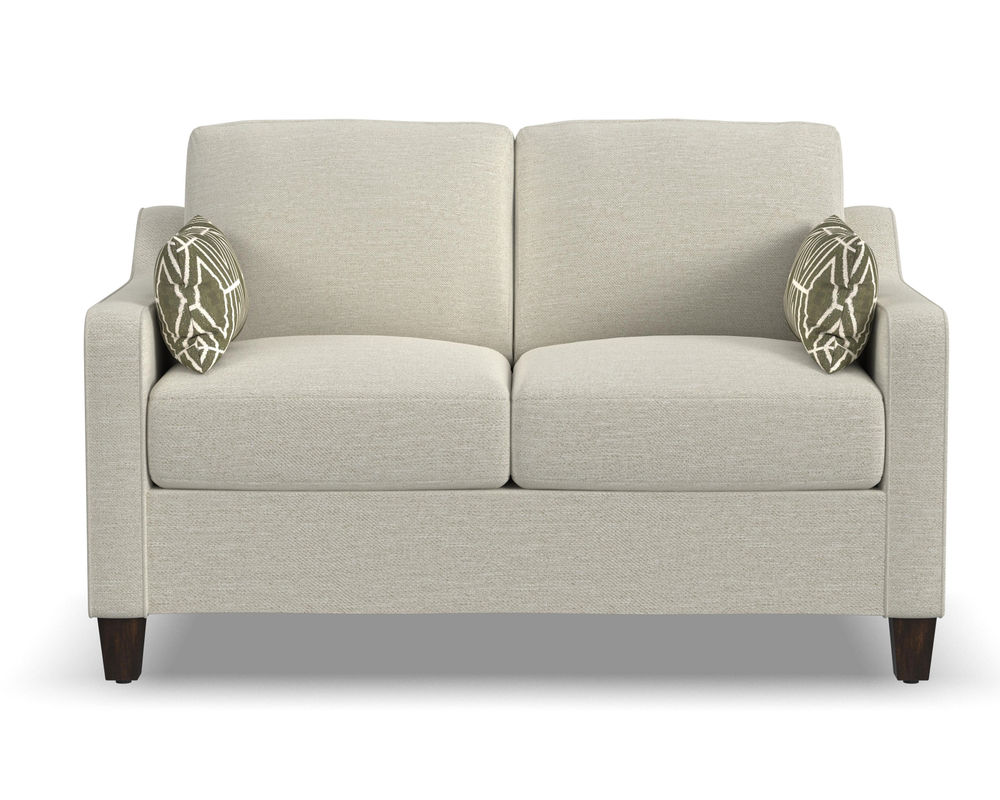 The Flexsteel Drew 5725 Chair is the perfect choice for comfort, quality, and style. With its gently sloping track arms, this chair is sure to make a statement in any room. The high padded back and tapered solid wood feet add to the overall design of this piece. The Flexsteel Blue Steel seat spring ensures that you will be comfortable for life. With over 100 standard and performance fabrics to choose from, you can customize this loveseat to perfectly match your space. The Flexsteel Drew 5725 chair is the perfect addition to any home.