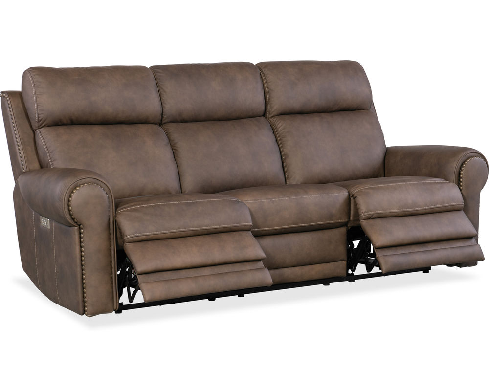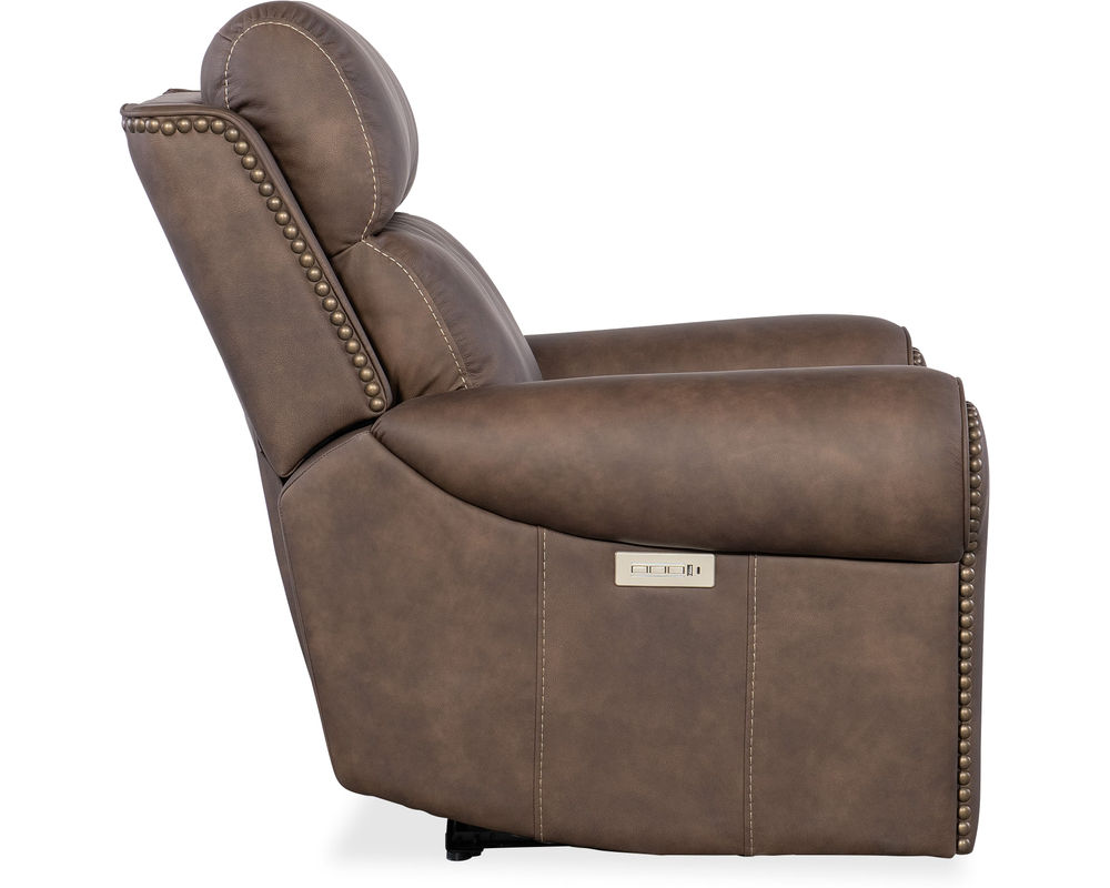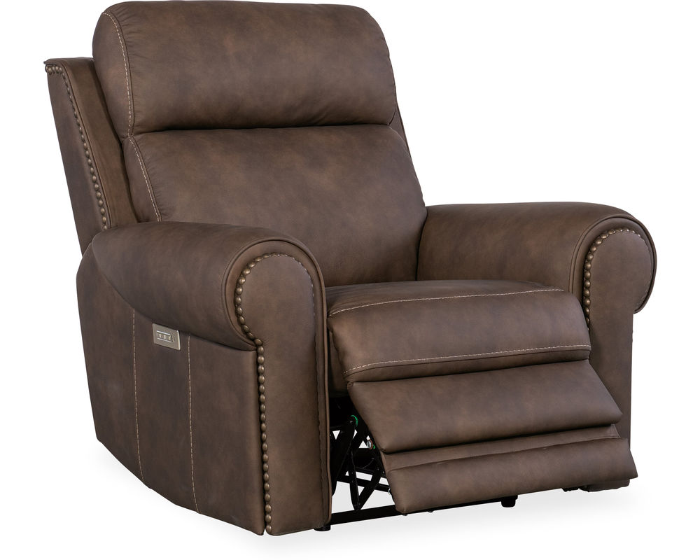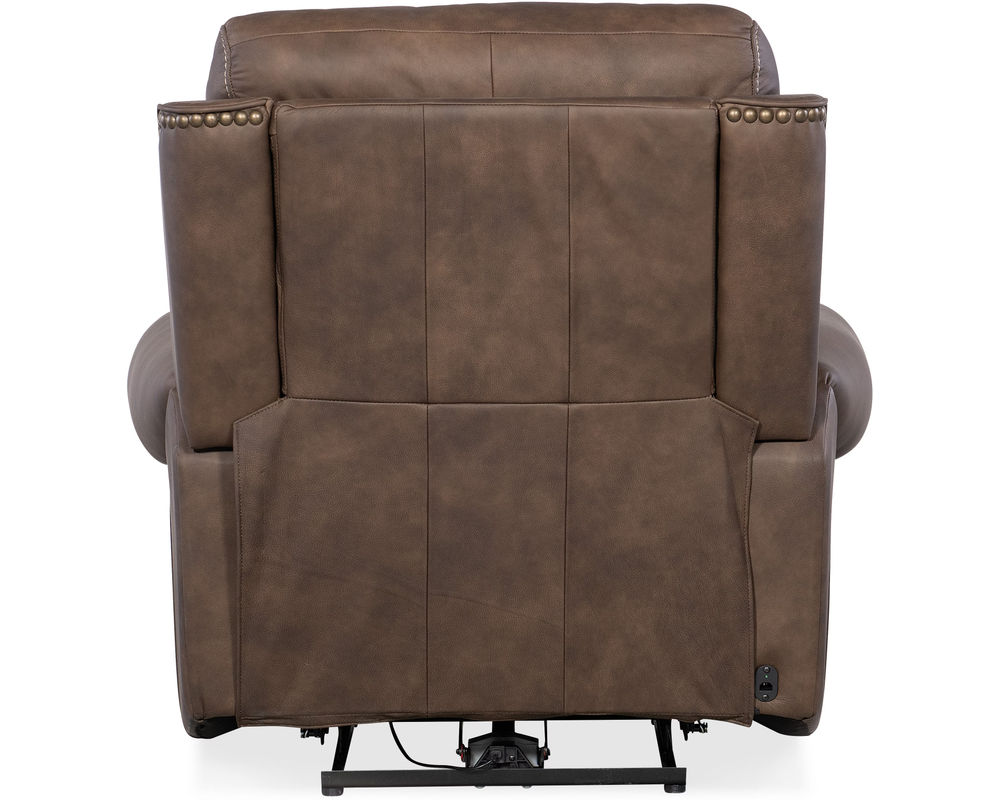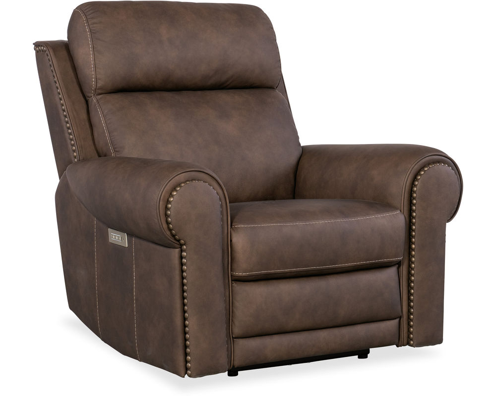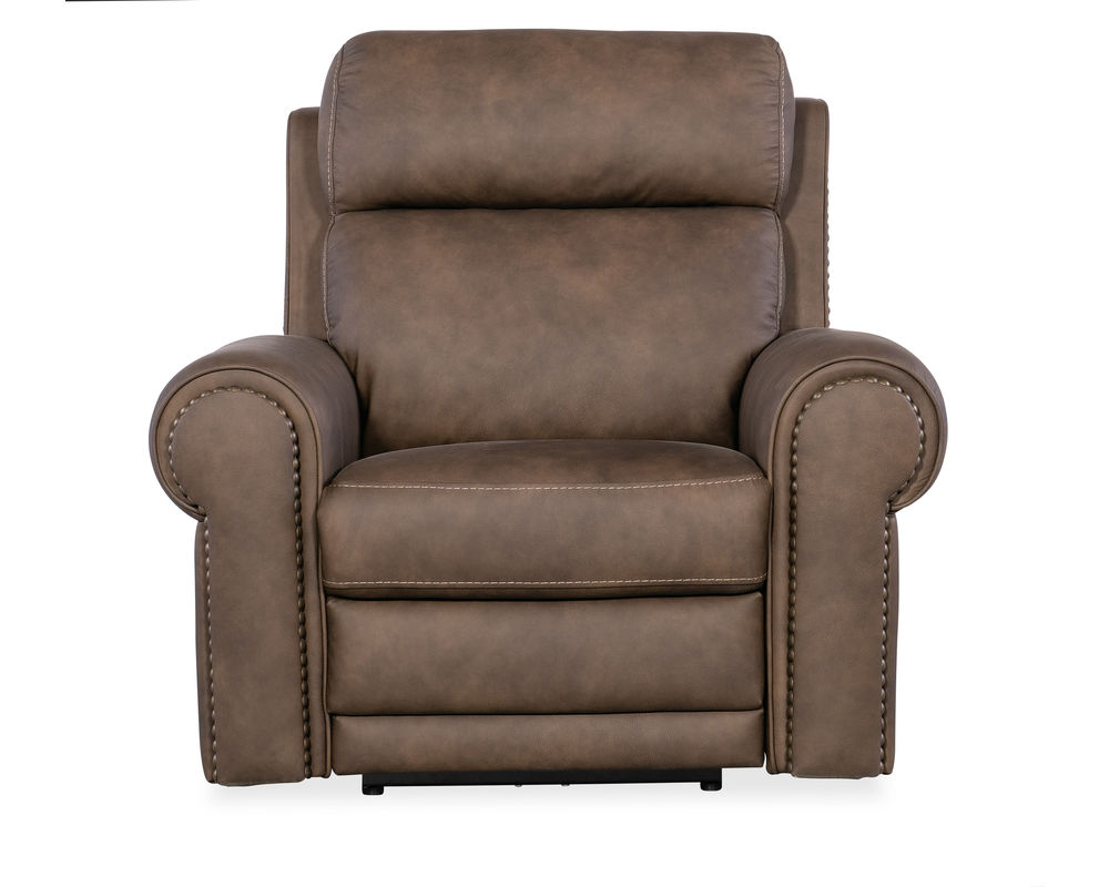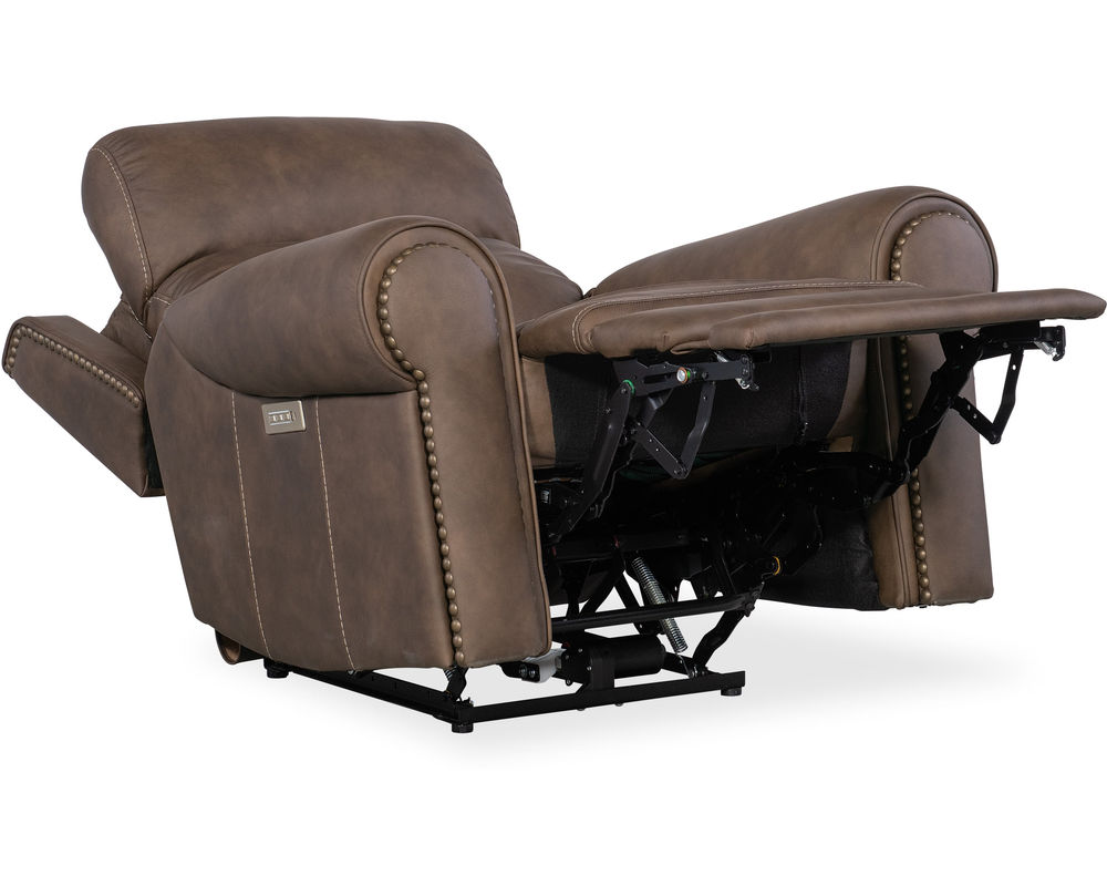 Duncan Triple Power Recliner Experience comfort on every level with the Duncan Triple Power Recliner by Hooker Furniture. Upholstered in luxurious Kalahari Bark semi-aniline top grain leather, this recliner offers power recline, power headrest, and power lumbar support—all designed to adjust effortlessly to your perfect comfort zone. With Zero Gravity reclining, a hidden pop-out cupholder, USB charging, and timeless style details like rolled arms and nailhead trim, the Duncan is the ultimate blend of relaxation and refinement.