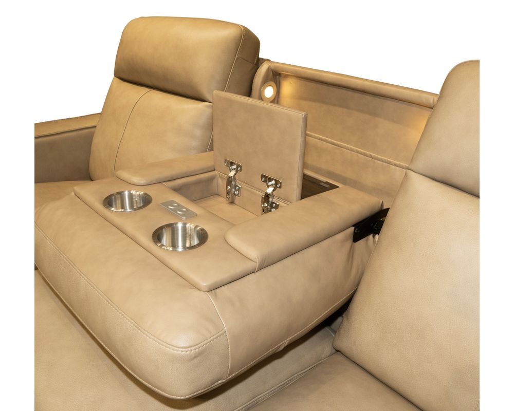 One of the standout features of this sofa is the center dropdown table, which is loaded with convenient features. You can charge your devices wirelessly while enjoying your favorite show or movie. The built-in lights provide just the proper illumination for a cozy ambiance. And the metal cupholders ensure that your drinks are always within reach, making it the perfect addition to your living room for entertaining guests.