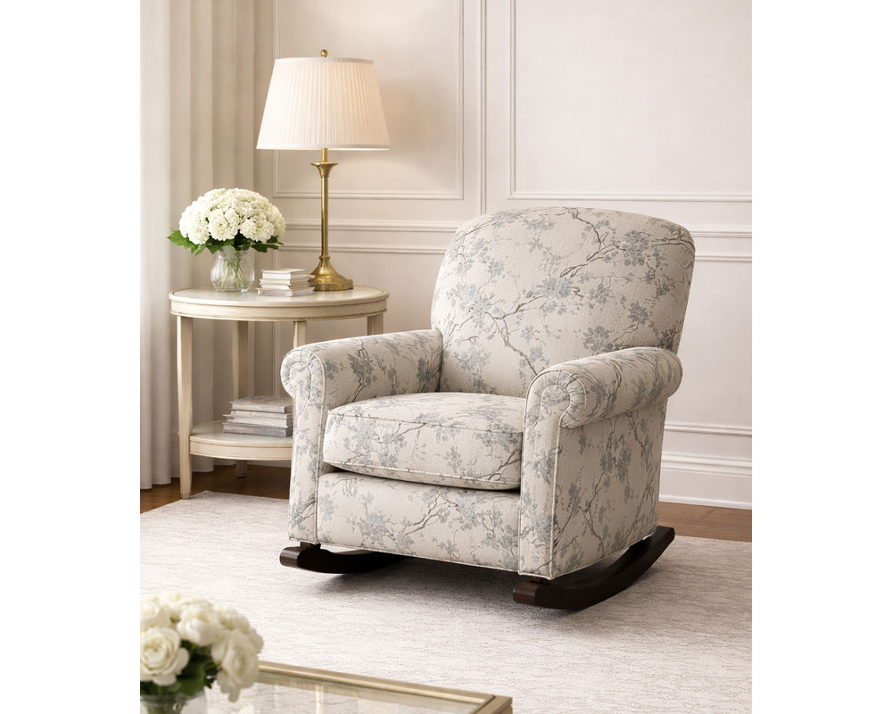 Perfect for quiet moments of relaxation, the smooth rocking motion helps create a soothing retreat where you can unwind after a long day. Whether placed in a living room, reading nook, bedroom, or nursery, the Eliza Rocker adds warmth, comfort, and timeless design to your space. For a complete coordinated look, the Eliza collection also offers matching sofa, loveseat, chair, and ottoman pieces.