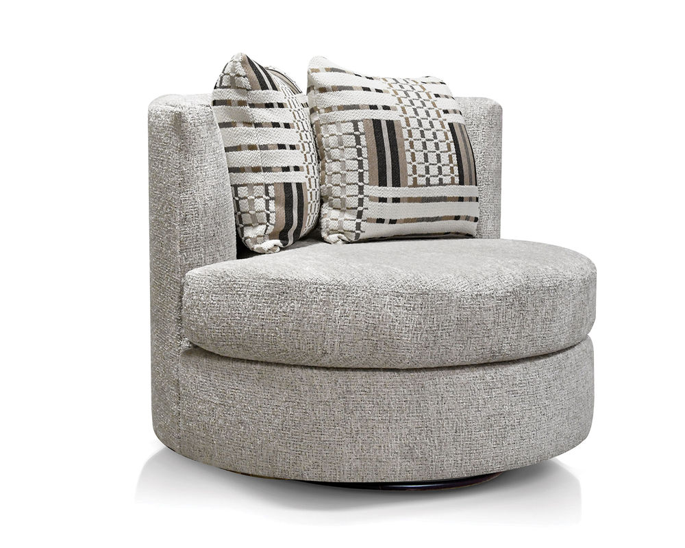 The Ellis 3S00 Swivel Chair offers a comfortable and stylish seating option for any room. With a loose pillow back and a plush seat, this swivel chair is designed for maximum relaxation. Its contemporary design makes it a great addition to any modern home. Available in over 100 fabrics, you'll be sure to find the perfect look for your home. The Ellis swivel chair is perfect for adding a touch of luxury to your living space. Its swiveling base allows you to move freely, and its soft, comfortable cushioning offers hours of comfort. Whether you're hosting a dinner party or just relaxing with a book, the Ellis swivel chair is sure to provide the perfect seating solution.