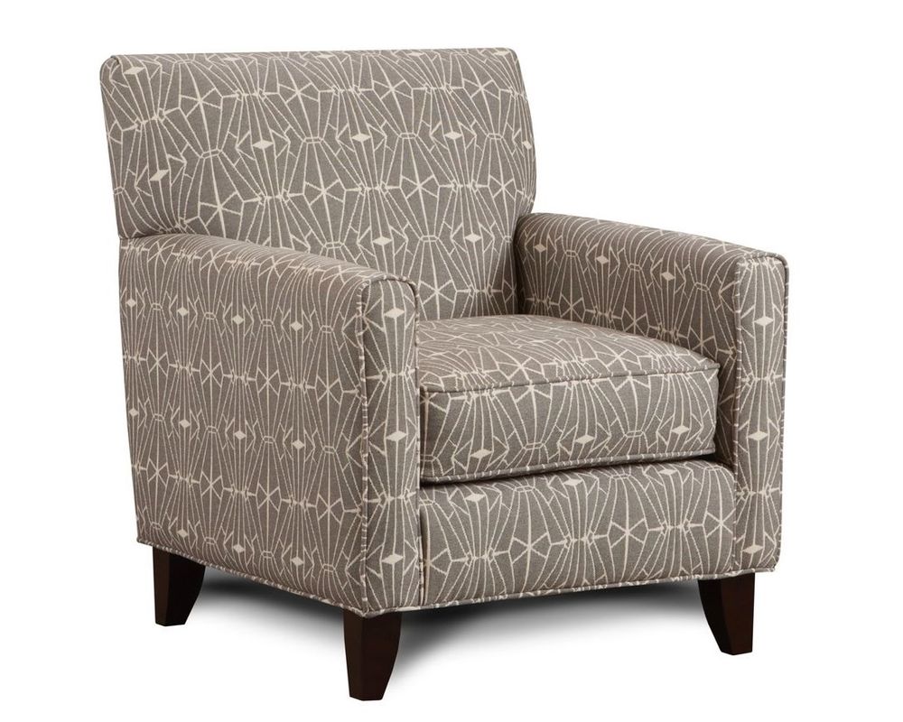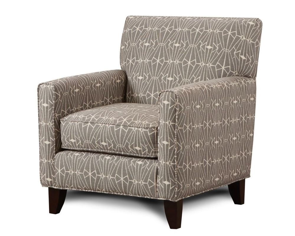 Introducing the stunning Emblem Charcoal Accent Chair - 702, the perfect addition to your home decor. This chair boasts a sleek and modern design with a tight back and rounded arms accented with welt detailing. The loose reversible seat cushion not only adds to the overall comfort of the chair but also prolongs the life of both the fabric and cushion core. Its coffee finish tapered wood legs add a touch of elegance to any room, making it a versatile piece that can be paired with our Sugarshack Glacier sofa group or used as a stand-alone occasional chair.