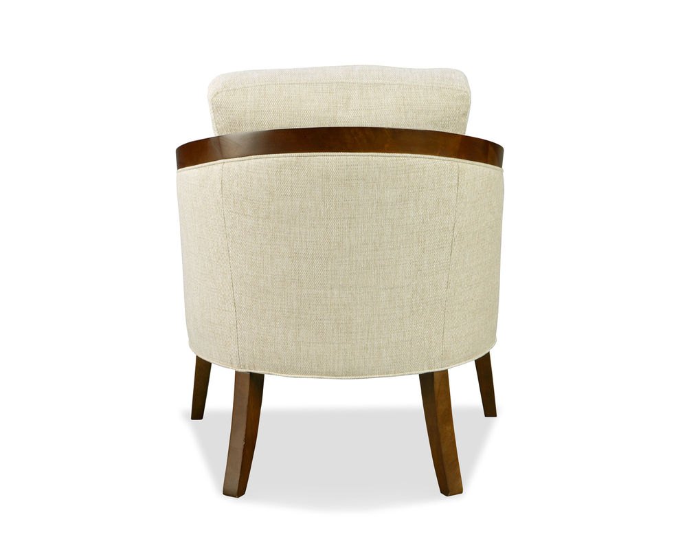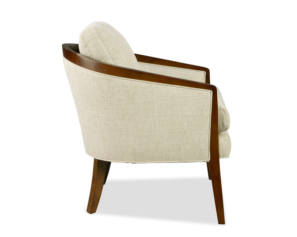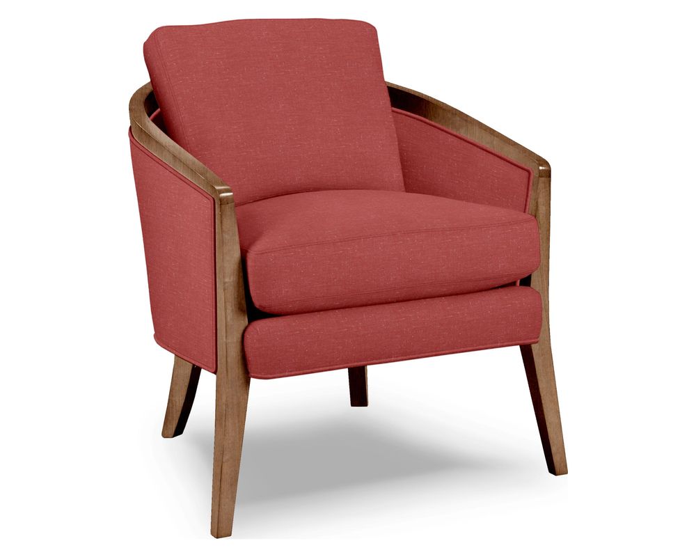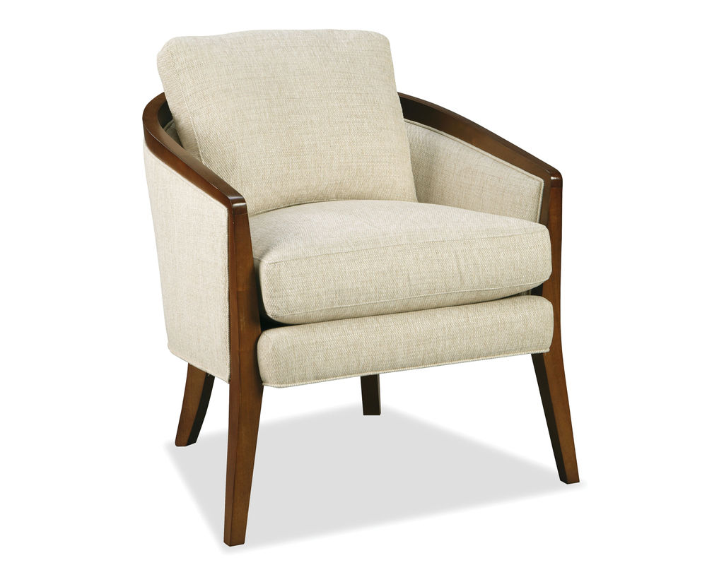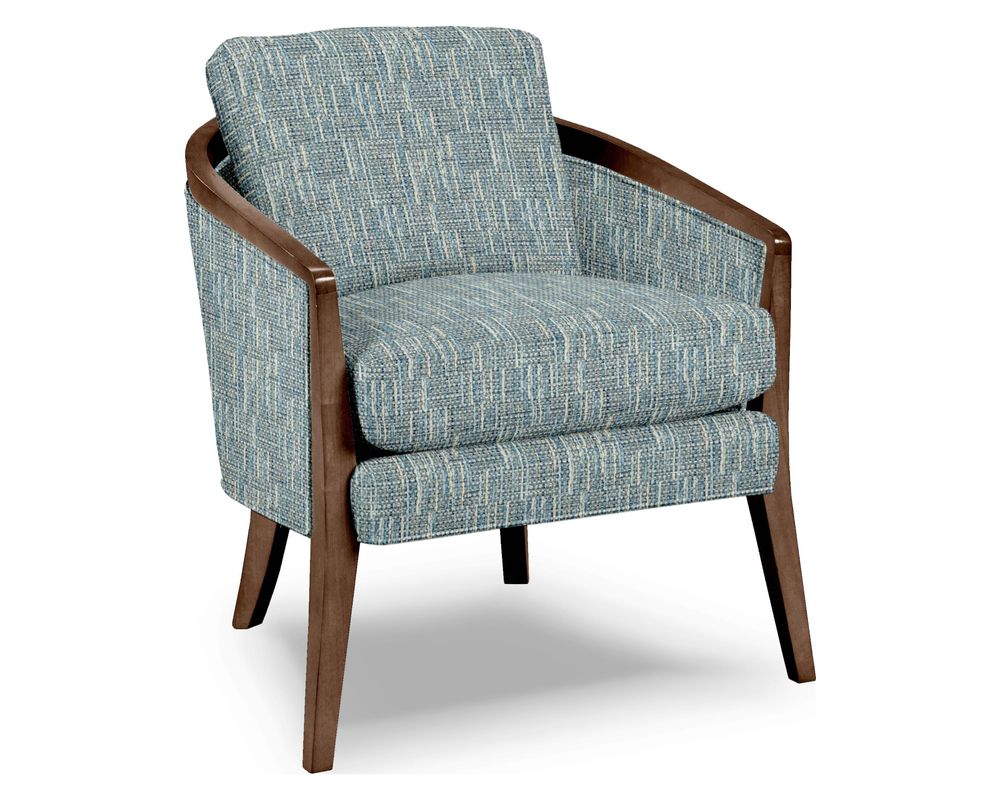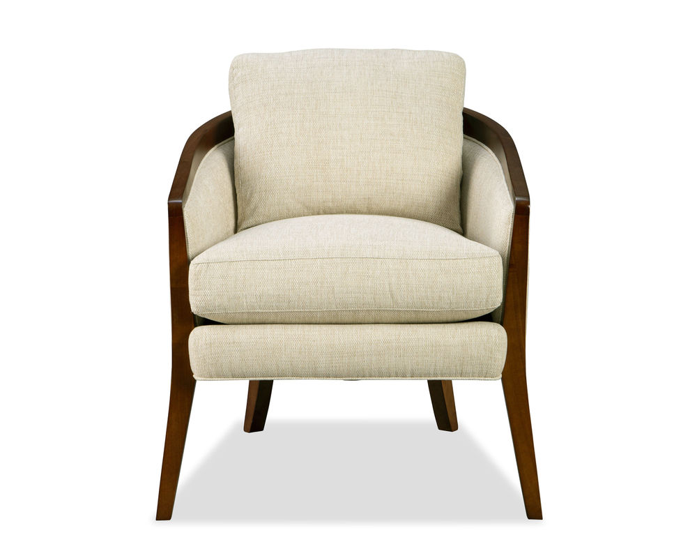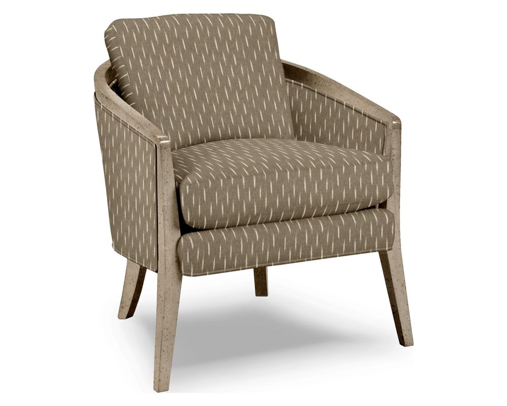 Introducing the Encore Chair from the Paula Deen Home collection - a truly unique piece that will transform the look and feel of any room in your home. This chair stands out with its elegant wrap-around wood trim and tall built-in legs that extend from the arms, adding a touch of grandeur to its design.
