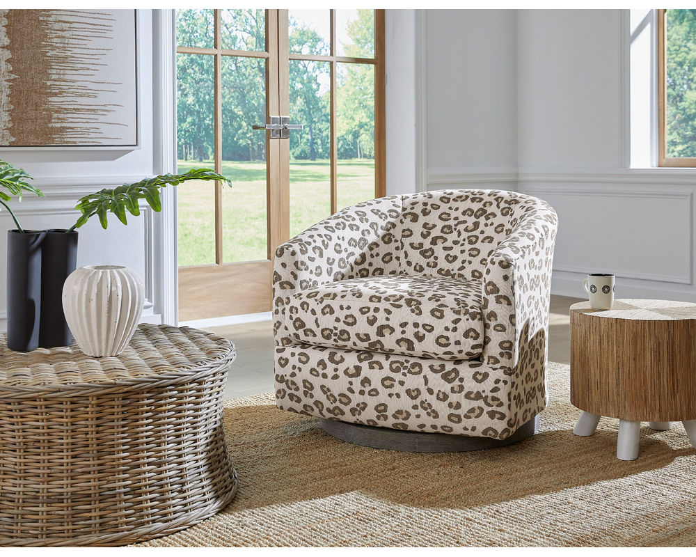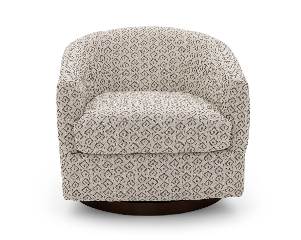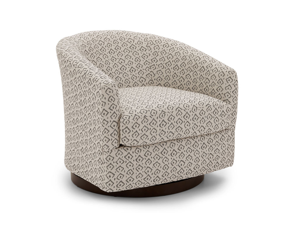 Introducing the Ennely 2128 Swivel Chair: a beautiful and modern chair that combines contemporary design with modern comfort. This chair is perfect for any living space and is customizable with a wide range of fabrics and three finish options, allowing you to create the perfect look for your home. It is built in the USA with fine craftsmanship, and its 360 degree swivel design ensures that it will last for years to come. Whether you're looking for a chair to complete your living room or to add a touch of modern style to your home, the Ennely 2128 Swivel Chair is the perfect choice.