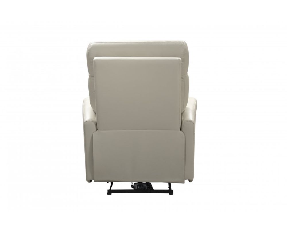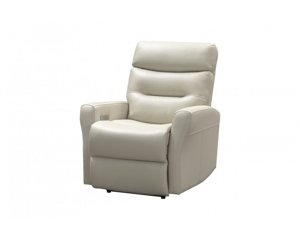 Modern smaller scale triple power reclining group has power recline, power headrest, and power lumbar with inside the arm controllers and USB ports. This group features crisp tailoring, unique kneed back hockey stick shaped arms, divided pub back, and pad over chaise bucket seating with pocketed coil springs, encased in foam and wrapped in Dacron for head to toe continuous comfort. Available pieces: sofa, console loveseat with underarm storage and 2 cup holder, matching recliner.