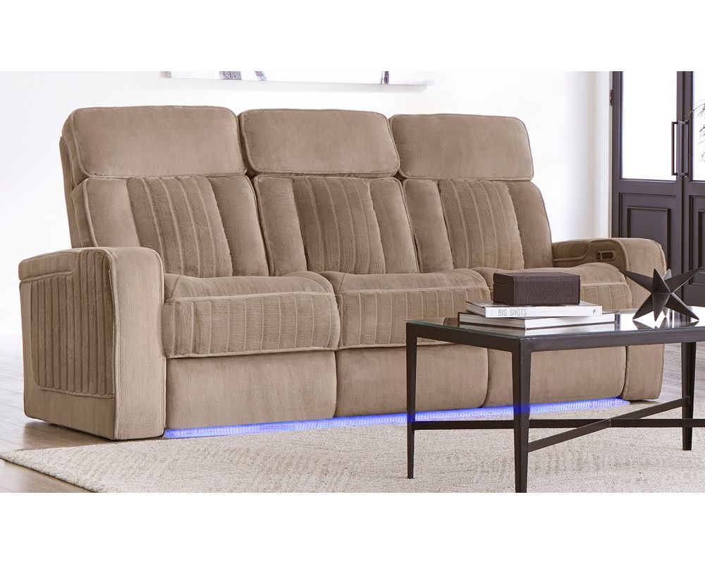 But that's not all, this recliner also features armrest storage and cupholders, allowing you to keep your favorite snacks and drinks within arm's reach. No more fumbling for the remote or spilling your drink while trying to relax. The blue ambient floor lighting adds a touch of elegance and creates a cozy atmosphere, perfect for movie nights or just unwinding after a long day.