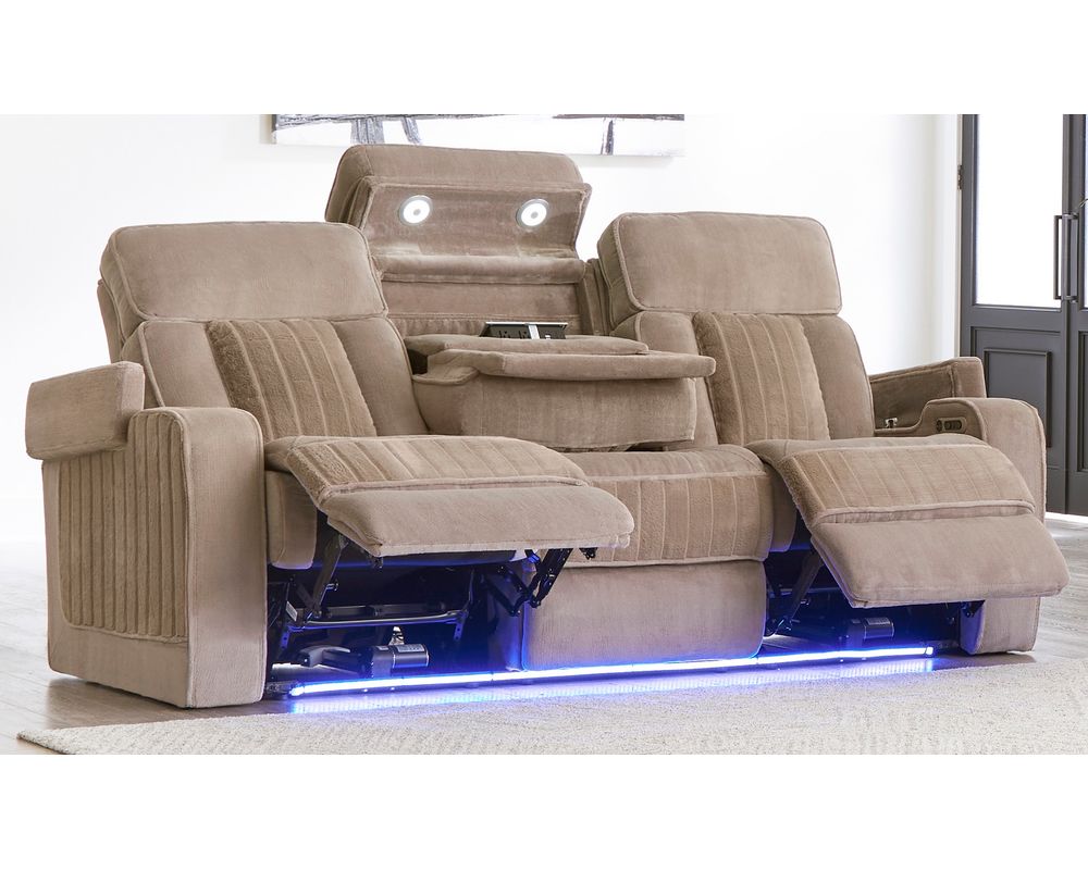 Introducing the Equinox Power Recliner, a luxurious and technologically advanced addition to any modern living space. This recliner stands out with its unique features, such as power recline and headrests, which can be adjusted with a simple touch, ensuring the perfect seating position.