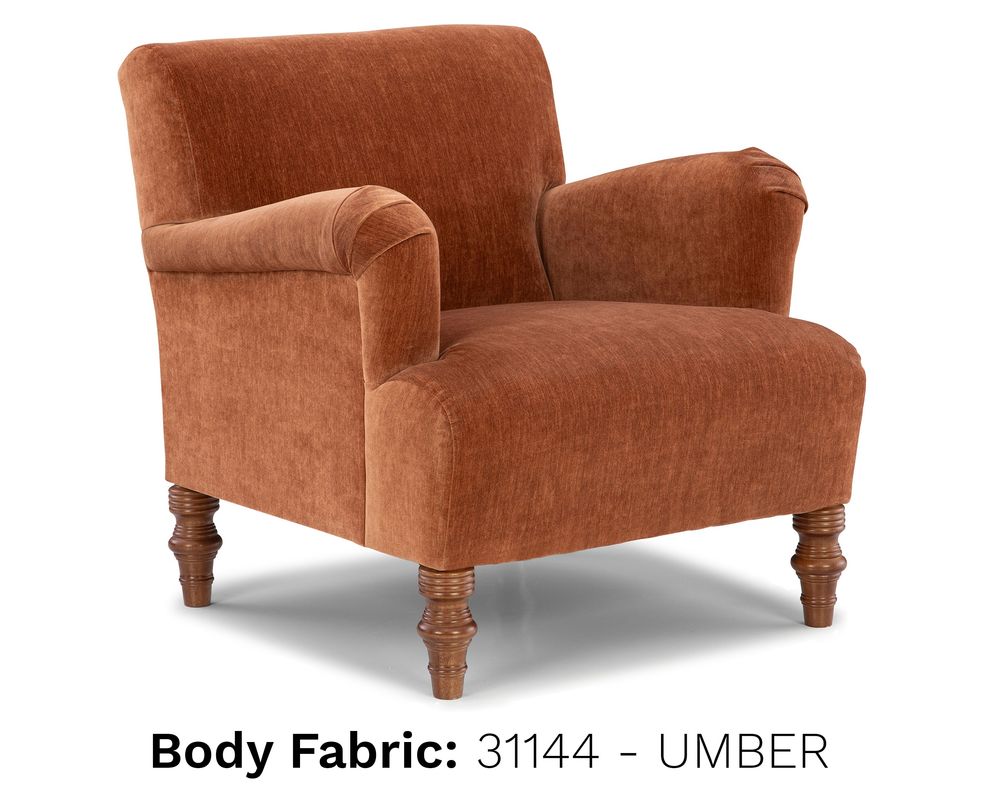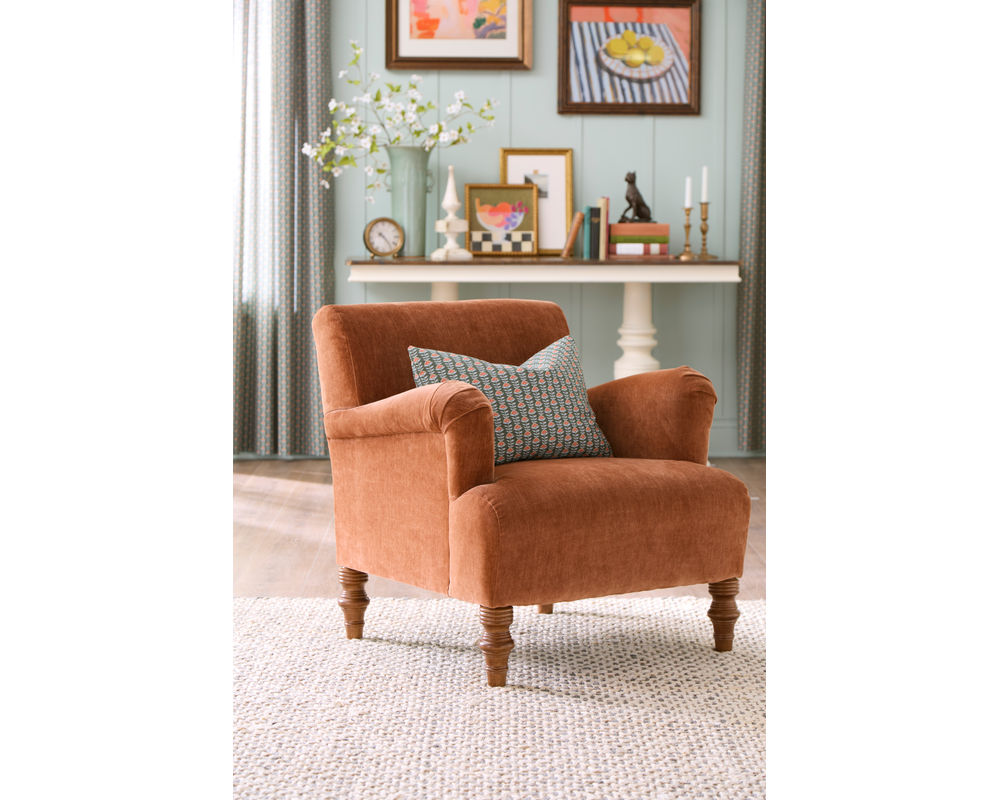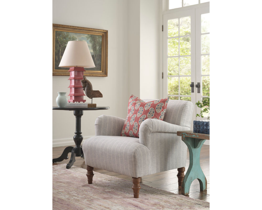 With its refined shape and welcoming presence, the Emerson Accent Chair strikes the perfect balance between statement and subtlety. A low, tailored profile gives Emerson a fresh, contemporary twist, while its tall turned legs and softly pleated arm detailing offer a nod to classic Southern craftsmanship. The result is a chair that feels both elevated and effortlessly at ease.