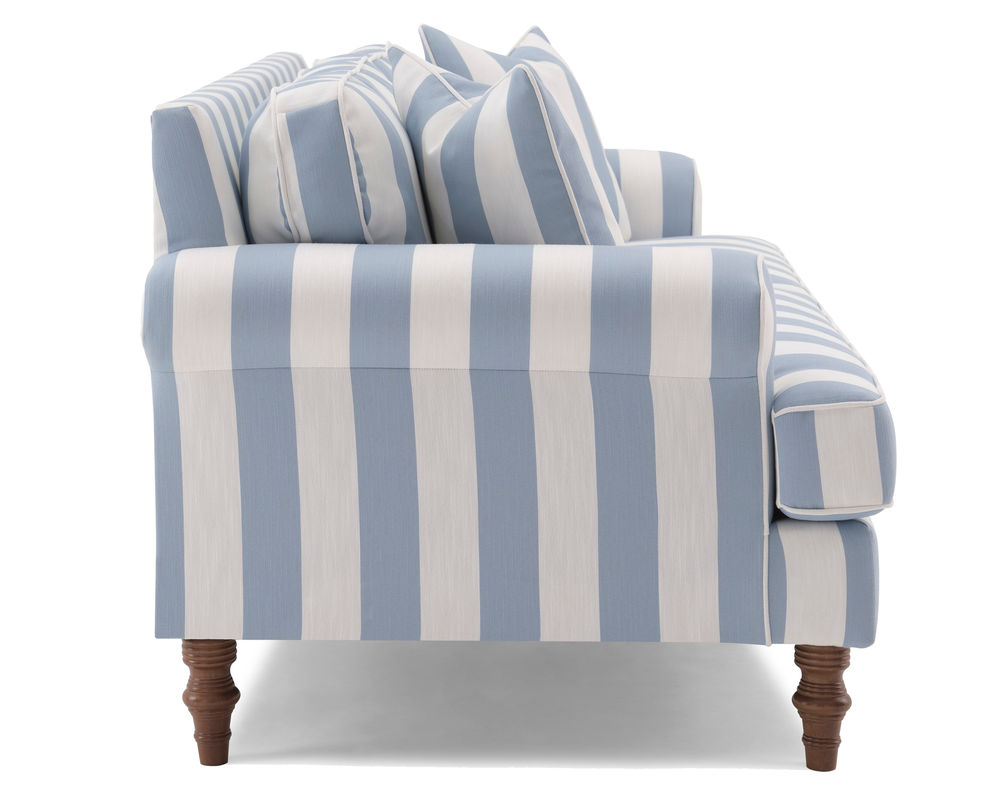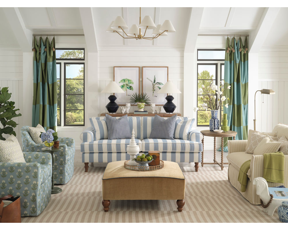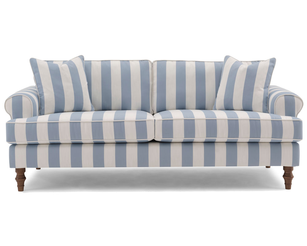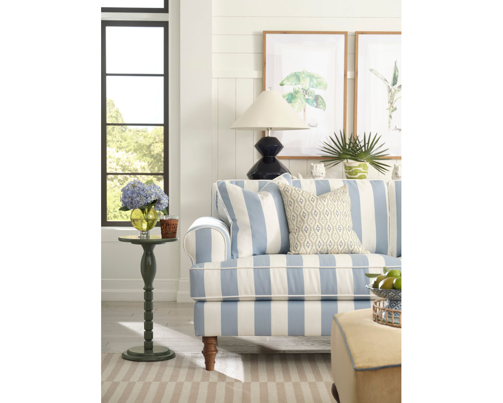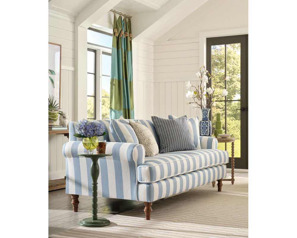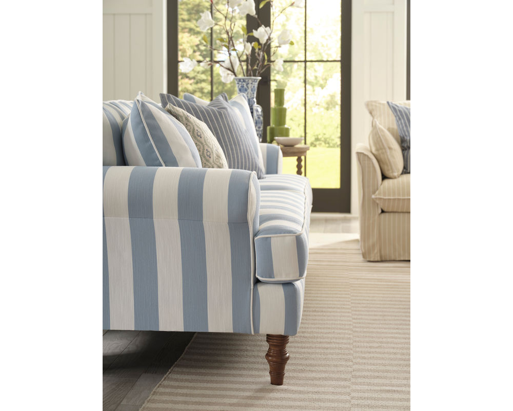 Thoughtful tailoring elevates the Faulkner’s relaxed personality. A refined contrast cording outlines each edge, giving the sofa a crisp, tailored definition that highlights its craftsmanship and perfectly proportions the silhouette. Turned wood legs add the final touch—a subtle nod to Southern antiques and heirloom furnishings that carry stories forward.