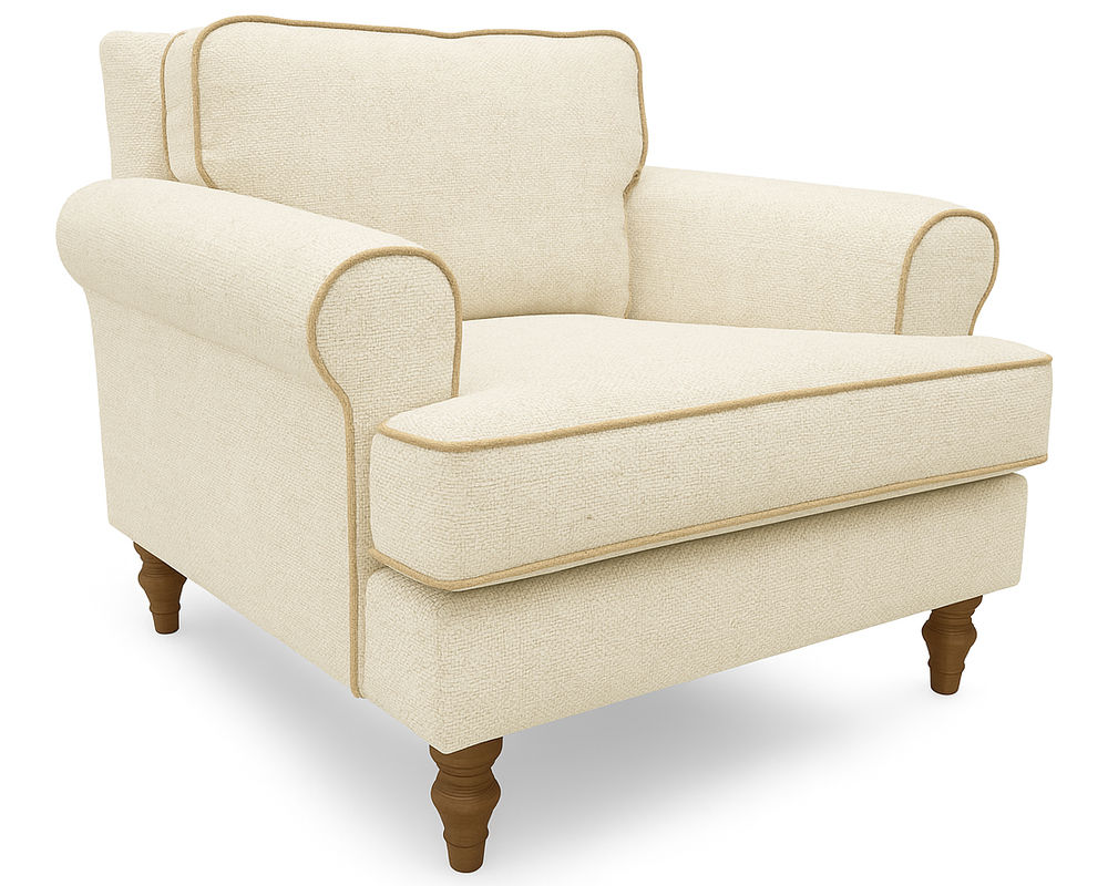 ✅ Sculpted, wide rolled track arms blend relaxed comfort with classic character