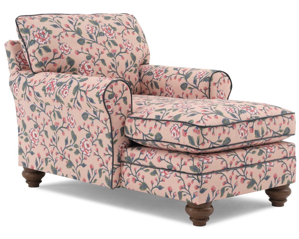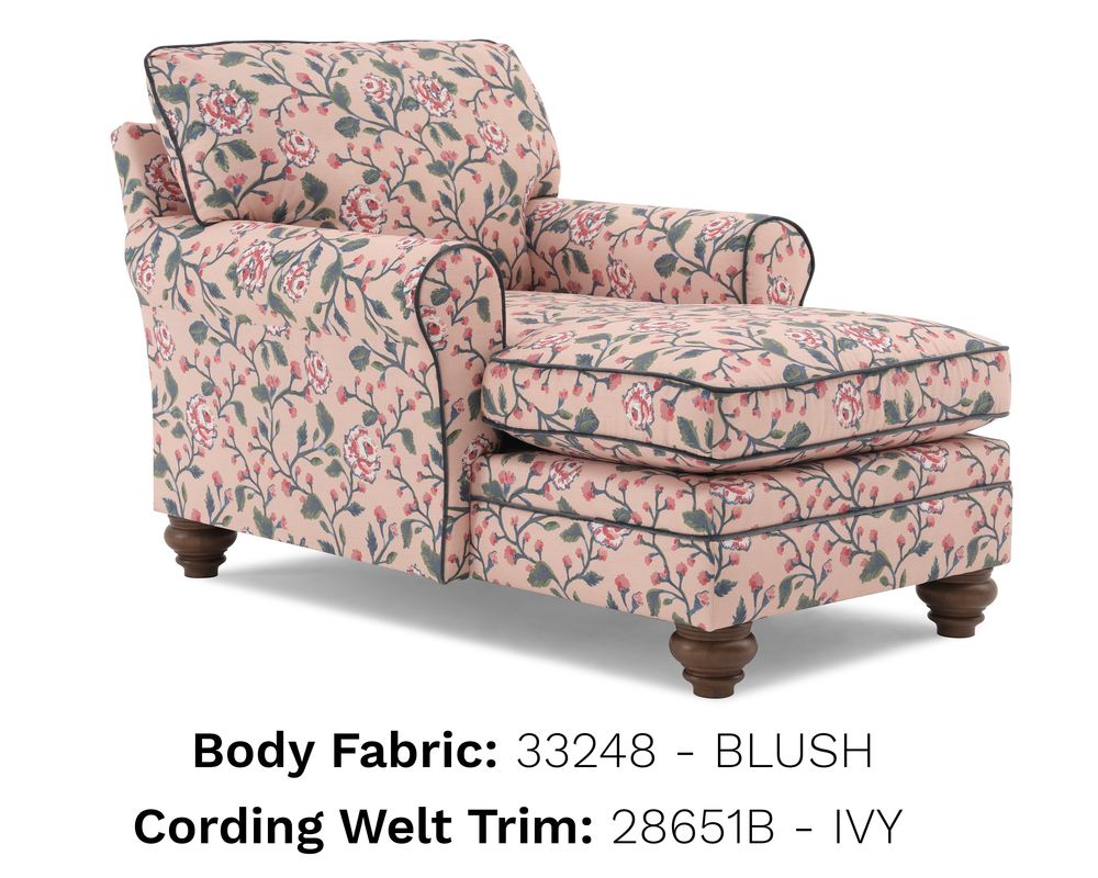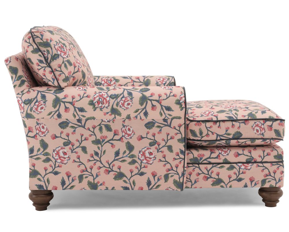 Graceful turned bun legs anchor the silhouette with timeless Southern character, while a refined contrast cording outlines each curve for a crisp, tailored finish. Built by hand in the USA using a sturdy hardwood frame and meticulous upholstery techniques, the Kress Chaise Lounge is crafted to be as durable as it is beautiful.