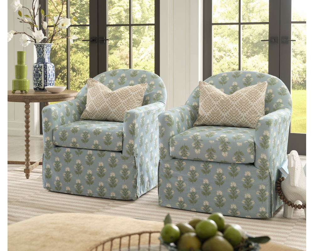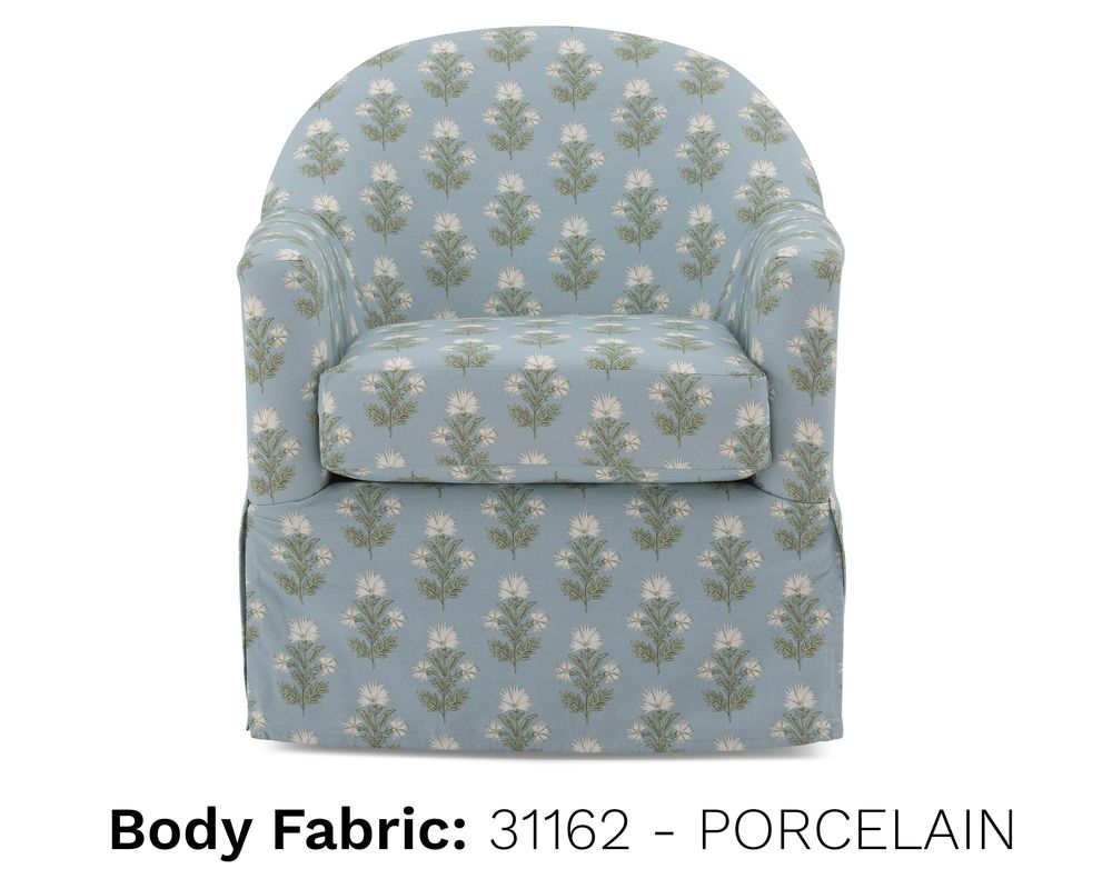Part of the Erin & Ben Co. Collection, the Meg Swivel Chair is available in 50+ curated fabrics, ranging from casual cottons to richly patterned weaves. Proudly crafted in the USA.
