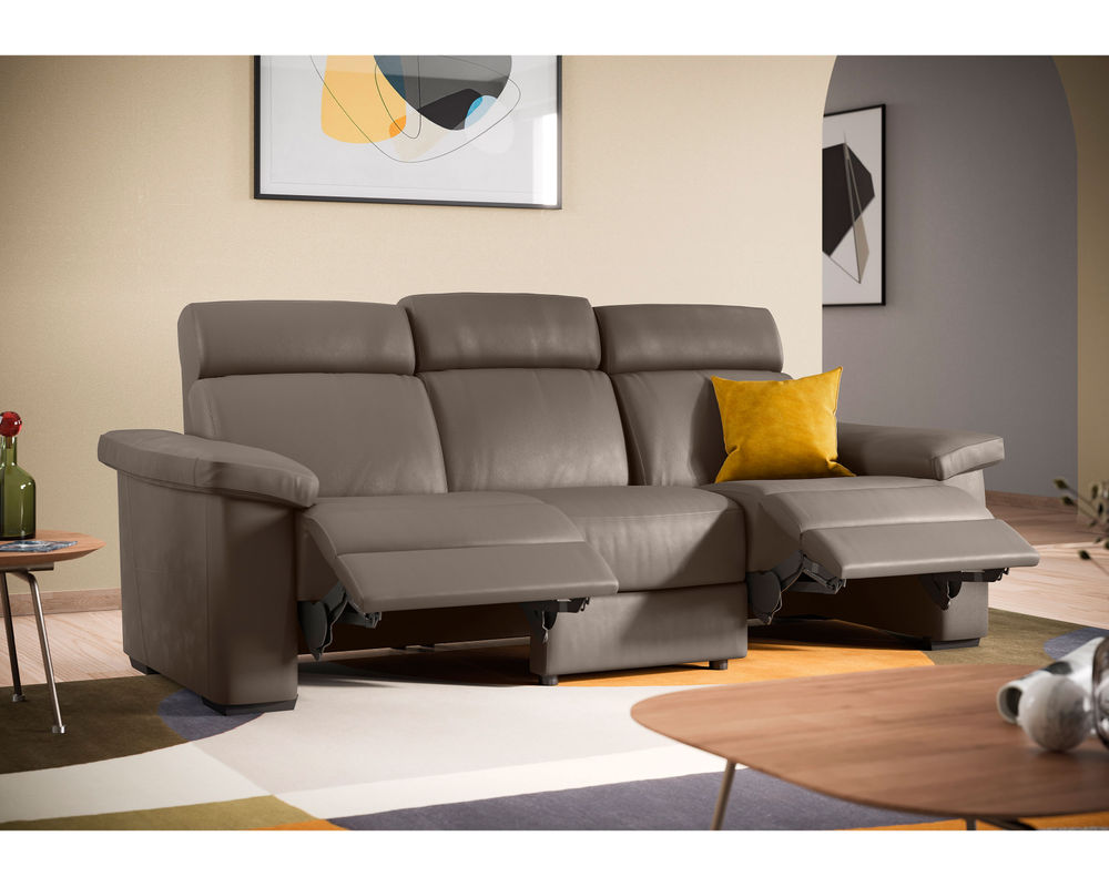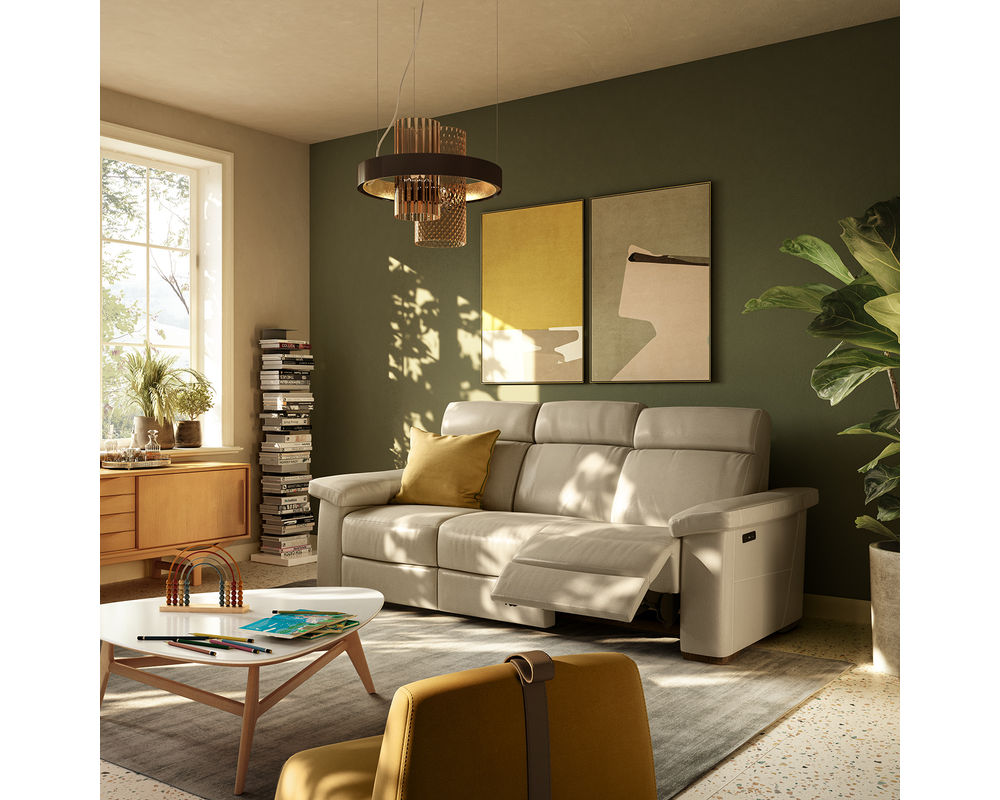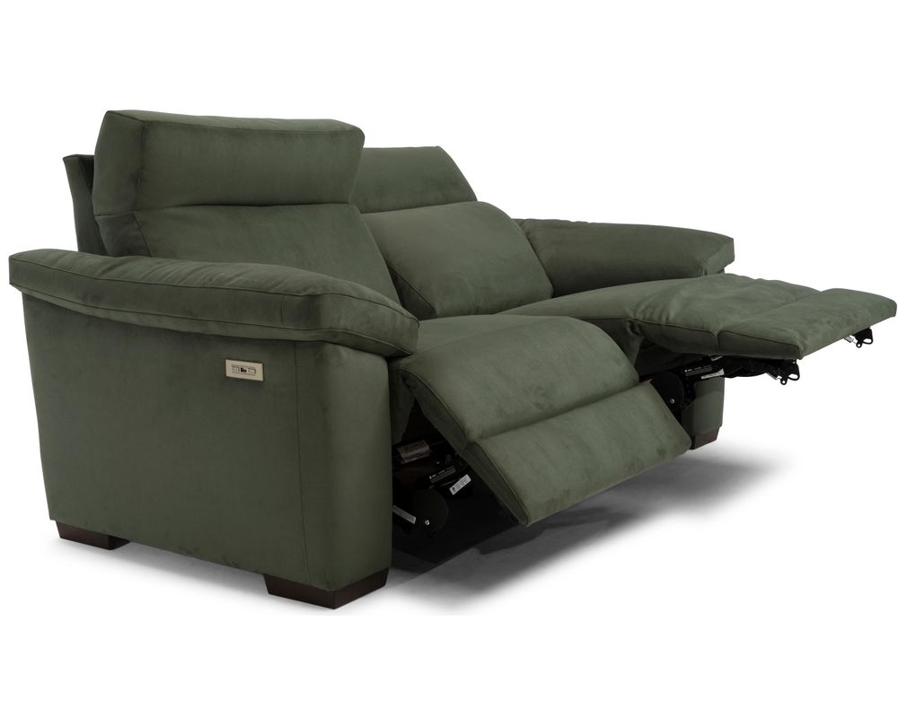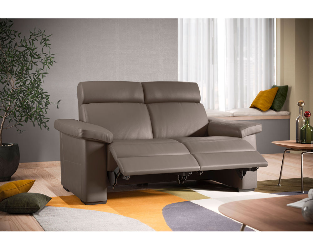 The Estremo C126 Reclining Sofa is a stylish and comfortable addition to any home. Featuring a supportive high-back and pillow-padded armrests, this sofa allows for total head-to-toe relaxation. The dual power mechanism has two different switches to activate the headrest and footrest separately, so you can adjust it to the position that suits you best. The smart switch on the side panel also comes with a USB port, so you can recharge your devices after a long day. The optional contrast stitching enhances the bold shape of the sofa, giving it a modern look. Whether you're looking for a comfortable place to relax or an eye-catching piece of furniture, the Estremo C126 Reclining Sofa is the perfect choice. Fabulous selection of high quality fabrics available.