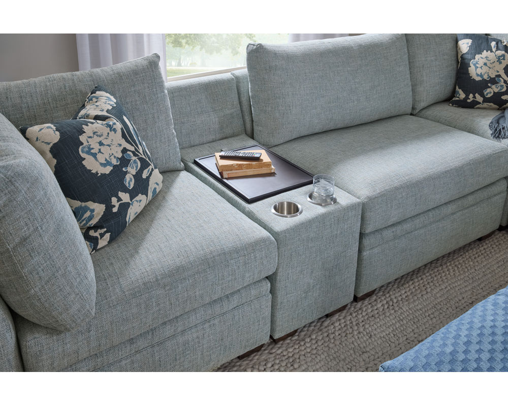 The Evelyn 5023 Sectional is not just a piece of furniture, it's a lifestyle upgrade. With its Smart Hub, an exclusive feature of this collection, you get more than just a place to sit. You get additional storage space to keep your living area clutter-free, a convenient charging station for all your devices, and a designated beverage space for your favorite drinks. It's not just a sectional, it's a smart, stylish, and functional addition to your home.