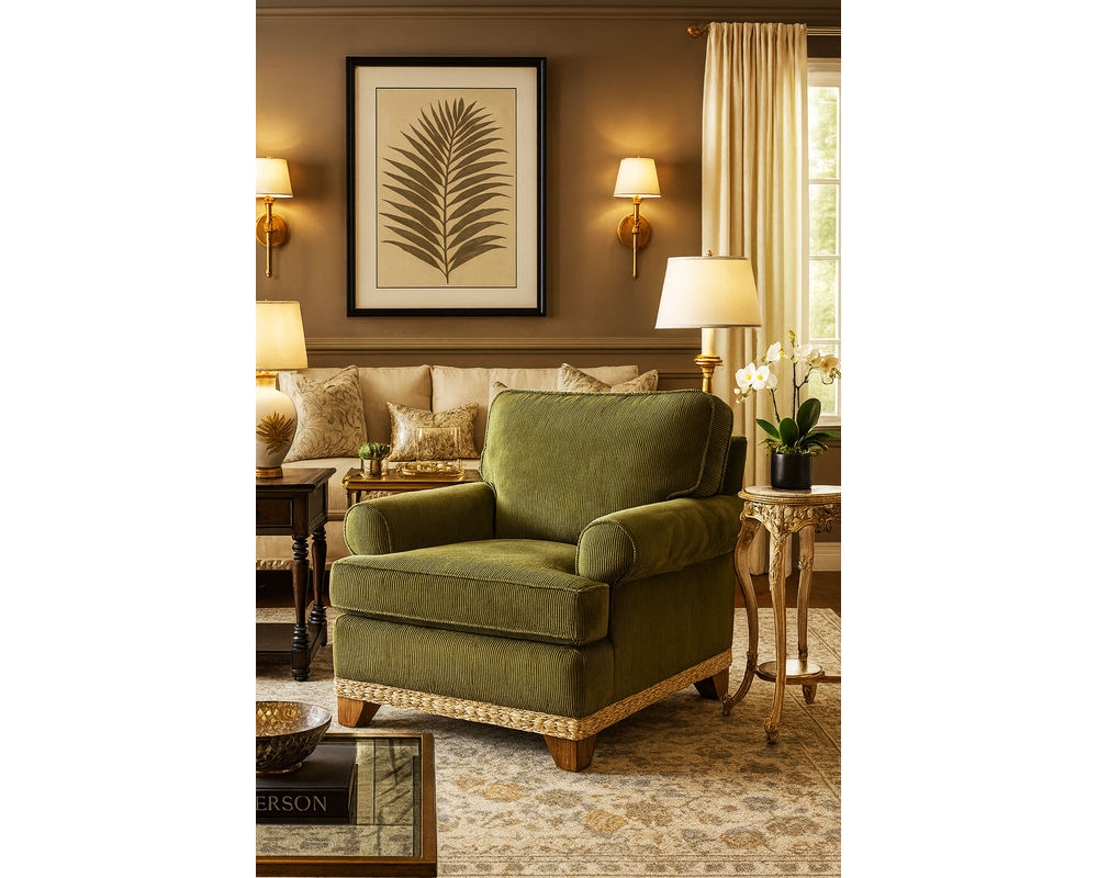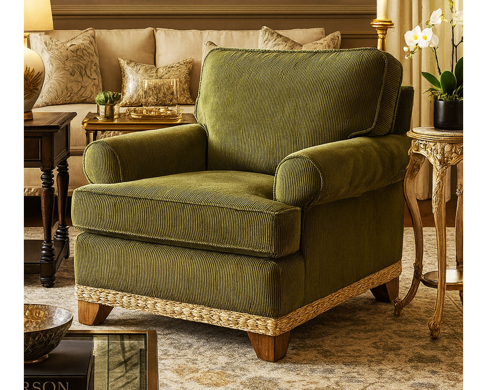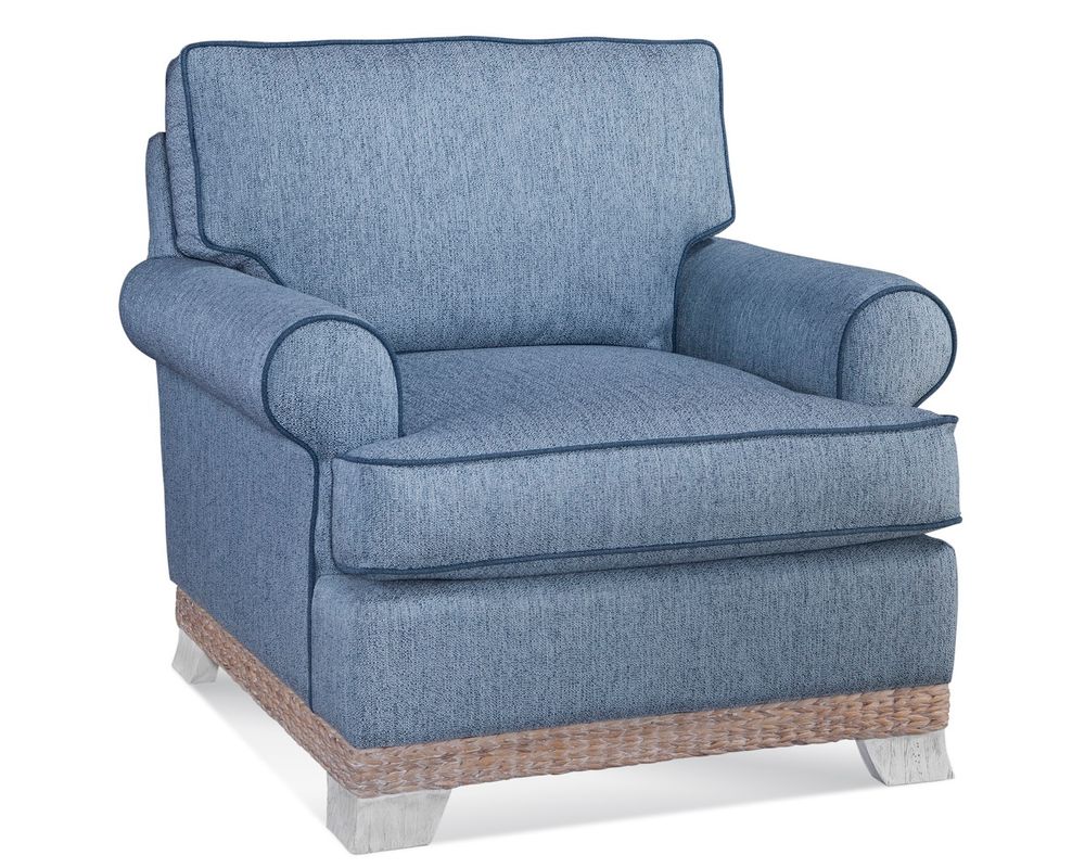 The Fairwind Chair brings the same timeless coastal sophistication of the Fairwind collection into a versatile single-seat design. With gracefully rolled arms, tailored welting, and a woven base accent, this chair offers refined style without sacrificing comfort. Its deep seating and plush cushions make it perfect for relaxing on its own or as a complement to the Fairwind sofa or loveseat.