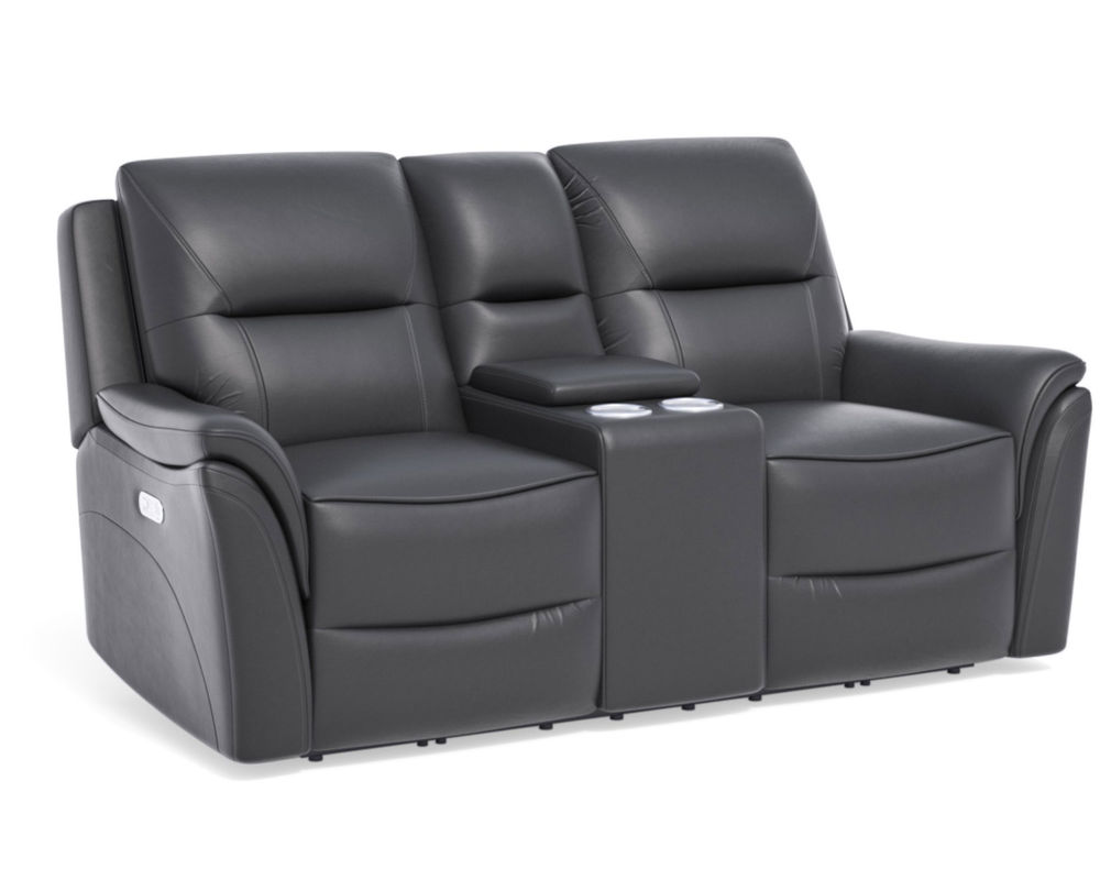 Whether you're stretching out for a snooze or sitting with a loved one, the Fallon power reclining loveseat with console and power headrests has all the comfort you need to unwind. To find the ideal position for relaxation, both people sitting can independently adjust the headrests and recline with power controls located in the arms. A convenient center console keeps drinks and snacks handy, while built-in USB charging ports in both arms keep devices powered up and ready to stream. Our patented Flexsteel DualFlex Spring System™ ensures quality that will last, along with a just-right mix of firmness and support as you sit. With refined details including our premium leather upholstery, this loveseat will be a beautiful and comforting addition to your living room.