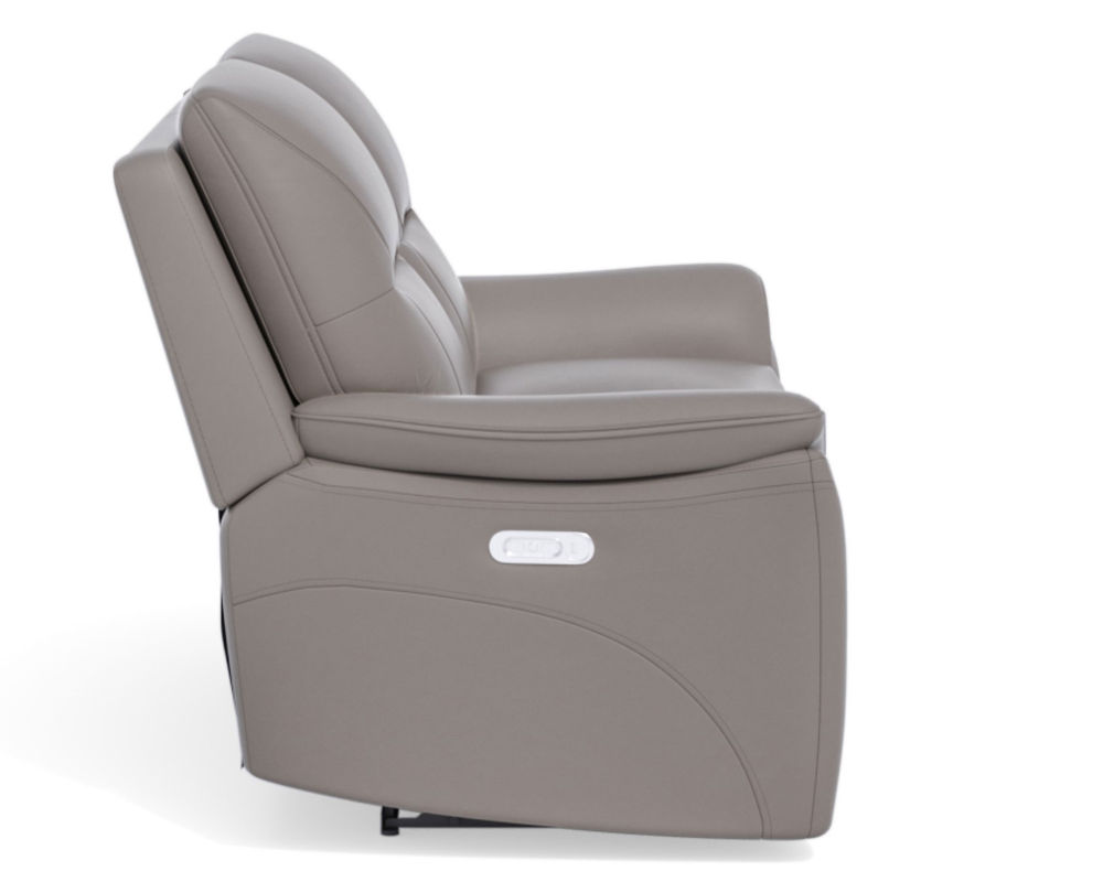 Experience customizable comfort and the luxury of top-grain leather with the Fallon power reclining loveseat with power headrests. Both you and a companion can enjoy reclining in the loveseat using power controls located in both arms. The power controls independently adjust the headrests and recline, so you can find the perfect position for relaxation, while built-in USB charging ports allow you to power up devices. Fallon's design looks as good as it feels, thanks to our luxurious leather upholstery. And durability is a given with our patented DualFlex Spring System™ that ensures a mix of firmness and flexibility as you sit.