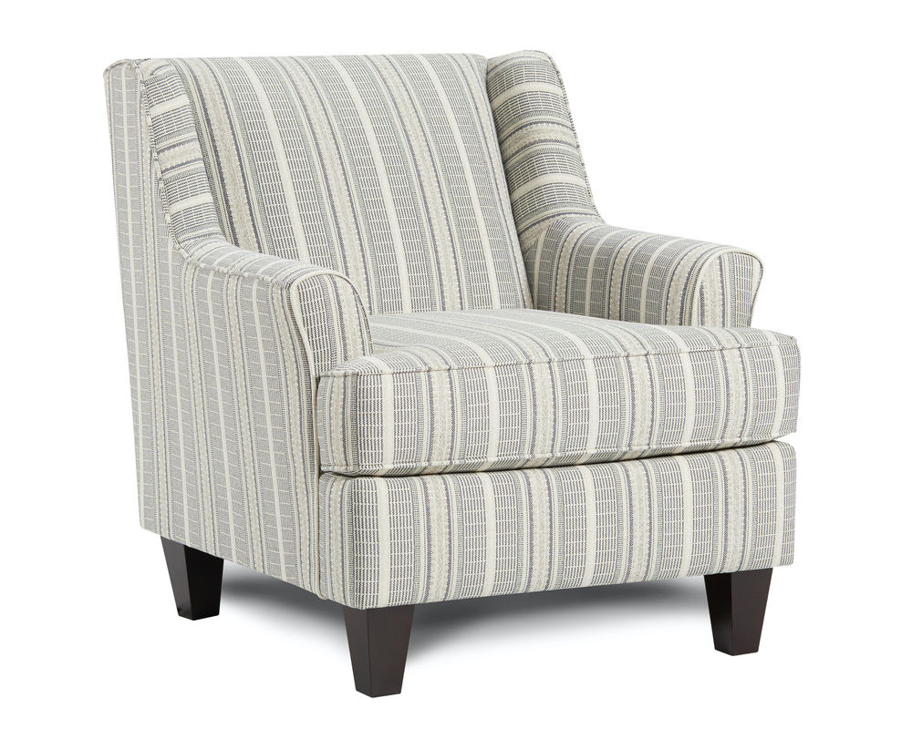 Introducing the Farmhouse Indigo Accent Chair, a charming and stylish addition to any living space. This occasional chair boasts a unique design with a tight back and wings, flared arms, and tapered wood legs in a dark coffee finish. The seat cushion features a t-cushion box border design that is both loose and reversible, adding to the chair's versatility and comfort.