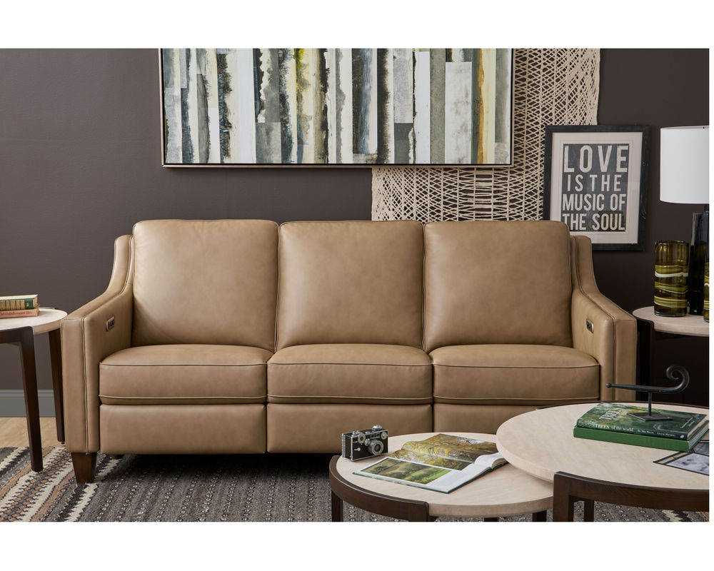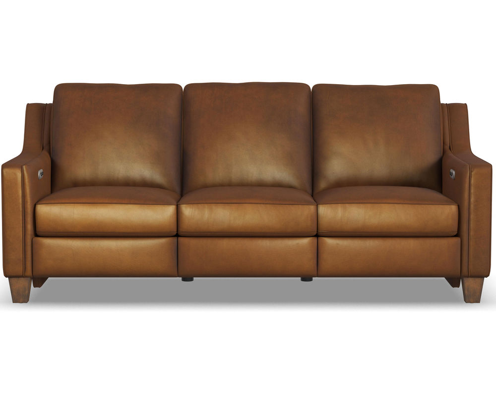 From Sofas and Sectionals.com—Introducing the Finley 5010 Leather Inclining Power Sofa - the perfect combination of tailored elegance and ultimate comfort. This sofa is designed with simplicity, featuring sloped, tapered track arms and beautiful welt detailing for a classic and refined look. But don't be fooled by its stationary appearance, as the Finley offers enhanced functionality with its power incline feature for easy relaxation.