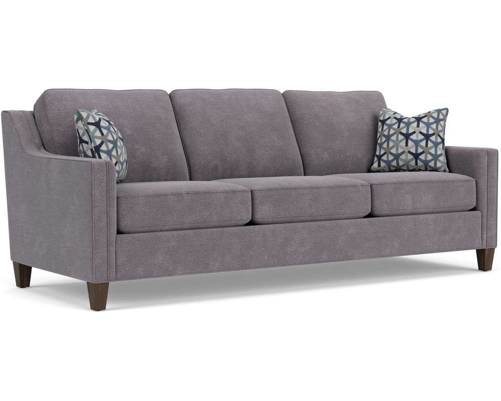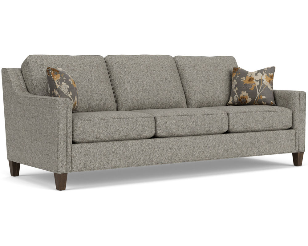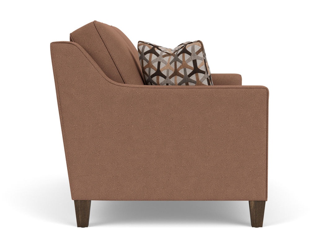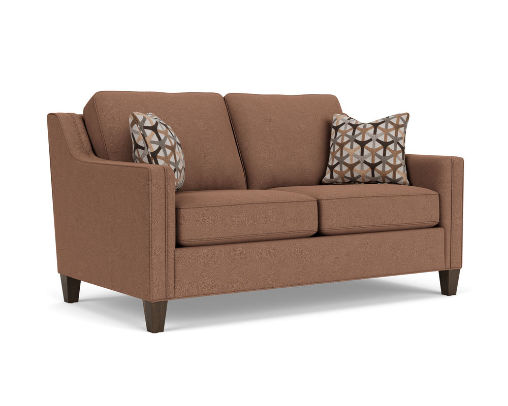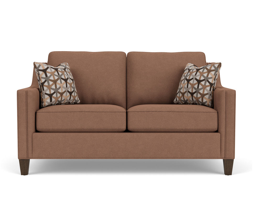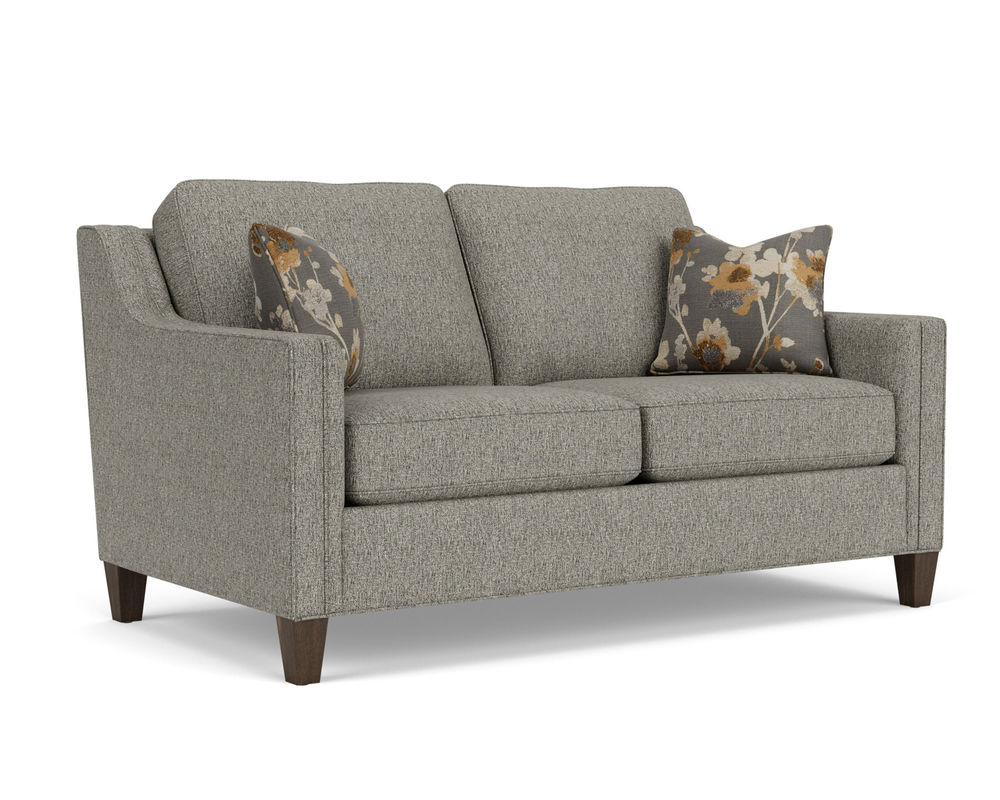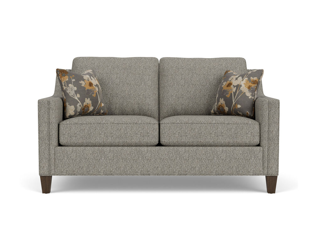 Add timeless style and endless comfort to your home with the Finley loveseat. Refined design elements including sloped, tapered track arms and an elegant, buried welt trim on the arms and cushion edges give the sofa a beautiful silhouette. Back cushions are attached to ensure they stay neatly in place. And the seat cushions are reversible, so you can rotate them to maintain superior comfort and a fresh look. Durability and flexibility are never an issue, thanks to our patented C-Flex Spring technology. To create an aesthetic that is all your own, choose from hundreds of fabrics, including high performance options, and from three wood finishes for the tapered legs. Accent pillows are included to complete Finley's elevated style.