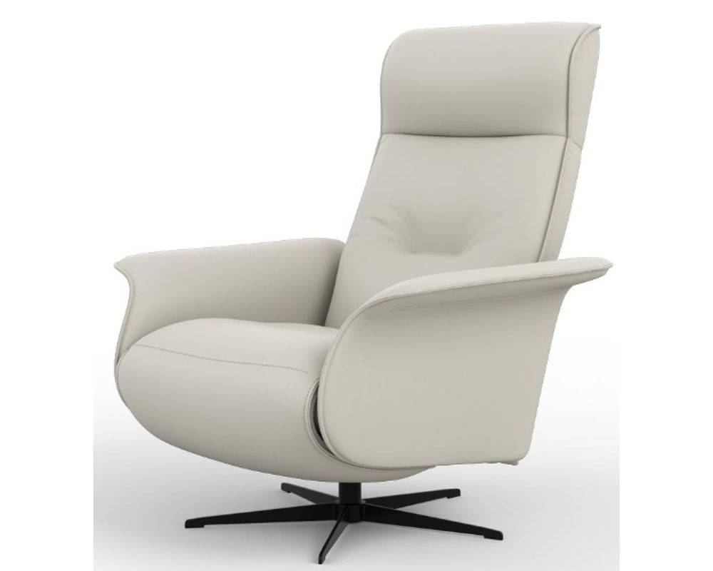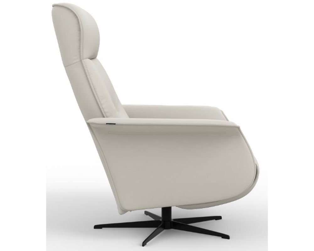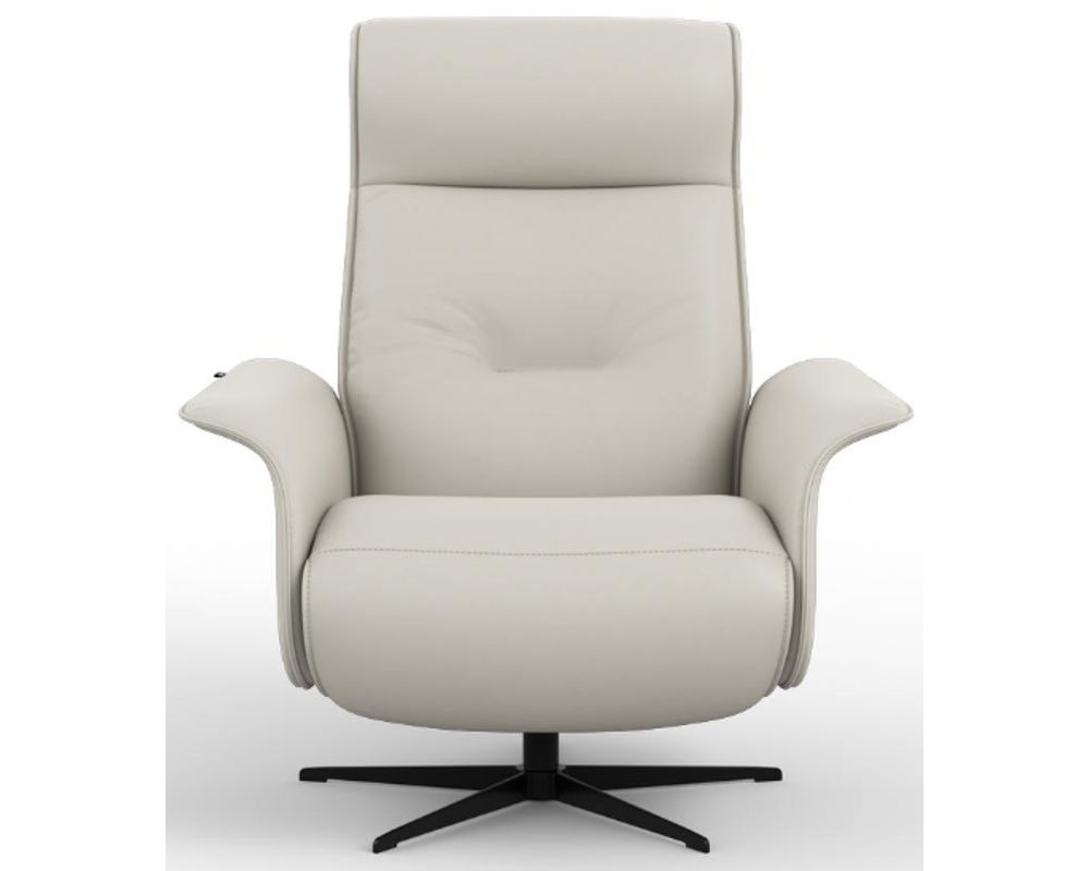 Introducing the Finn Cordless Power Leather Recliner - a luxurious and modern addition to any home. This recliner is designed with ultimate comfort in mind, featuring dual motorized functionality for continuous support of your legs and back. With independent control of the footrest and back positions and a swivel base, you can easily find the perfect position to relax in.