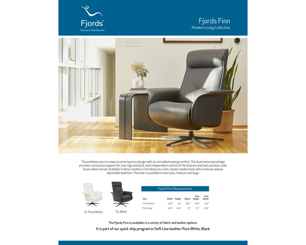 Experience the ultimate relaxation with the Finn Cordless Power Leather Recliner. Upgrade your living space with this sleek and comfortable recliner today.
