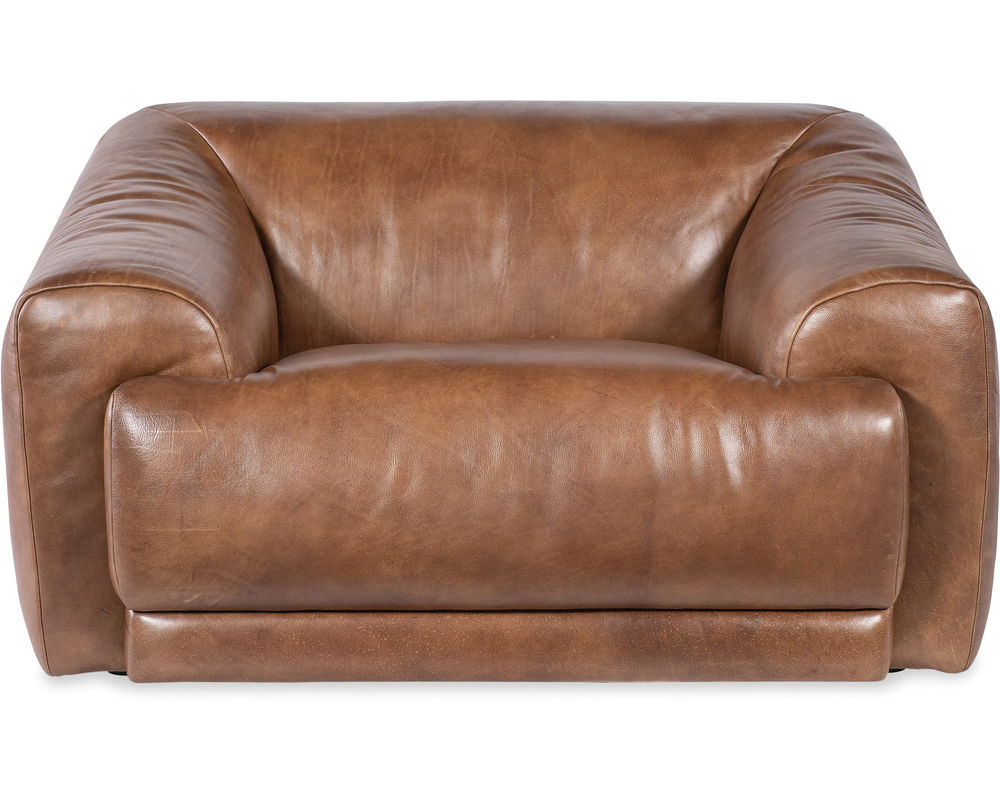 Tailored Sophistication in a Luxe Lounge Chair Indulge in refined comfort with the Fleetwood Leather Chair from Hooker Upholstery. Upholstered in luxurious 366-102 Taupe Aniline leather, this stationary chair offers a rich blend of style and support. Its wide, gently curved arms and sleek T-shaped seat cushion provide a crisp, modern silhouette with a welcoming feel. Perfect for reading, relaxing, or pairing with the Fleetwood Sofa, this chair brings casual elegance and lasting quality to any space.