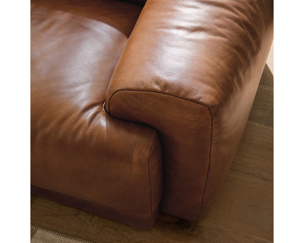 • Upholstered in premium 366-102 Taupe Aniline leather for natural softness and depth