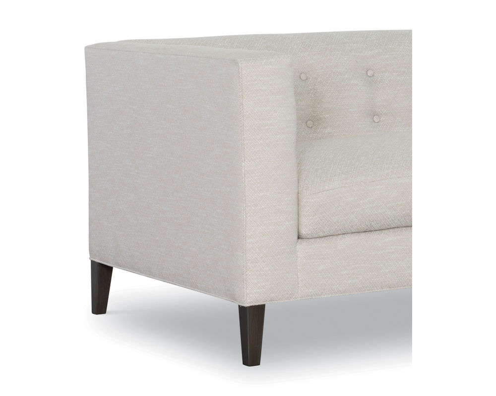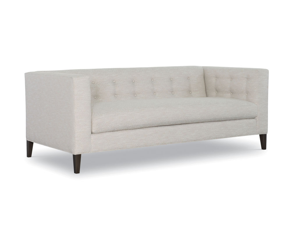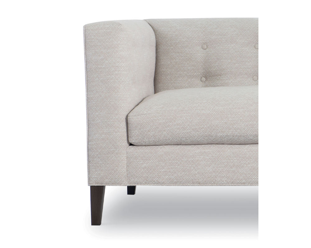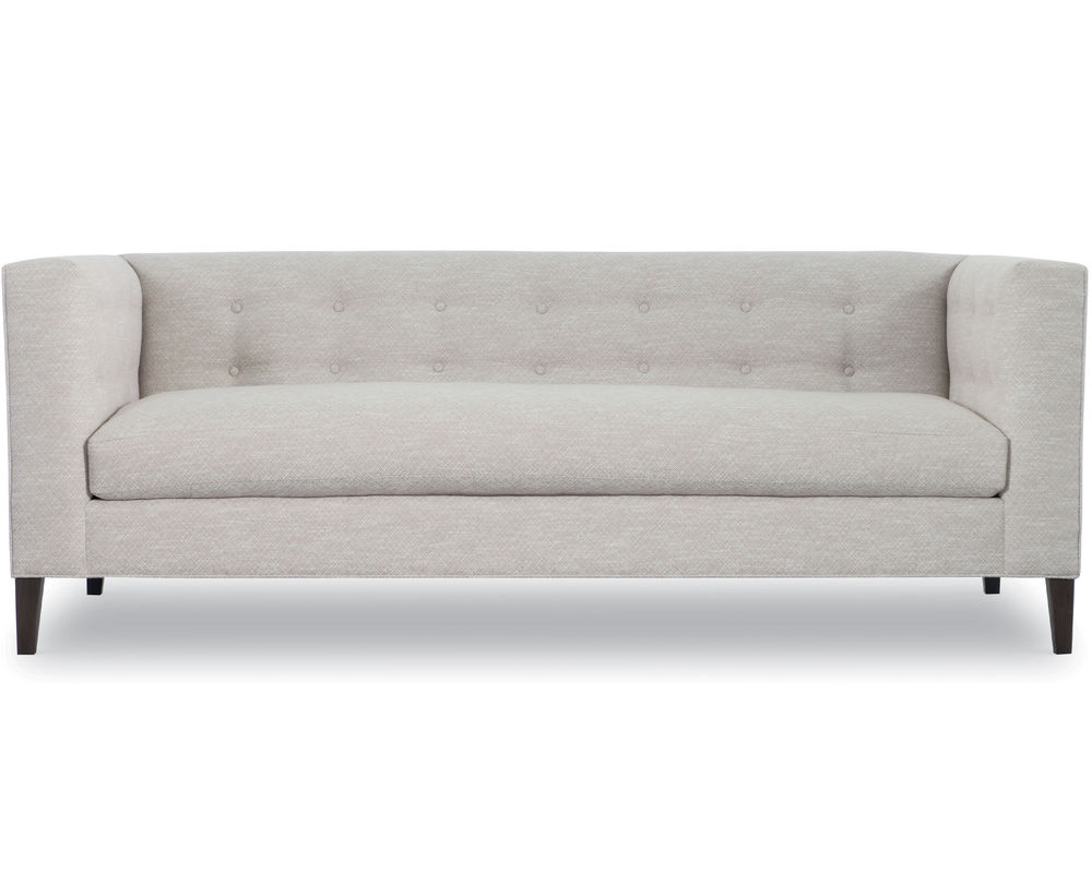 Experience the allure of timeless elegance in your living space with the Fletcher Sofa from CR Laine. This exceptional piece boasts mid-century modern styling, a tight back with button detailing, and weltless cushions for a sleek and sophisticated look. The track arms and tapered solid wood legs add a contemporary twist to this classic design, making it a unique addition to your home.
