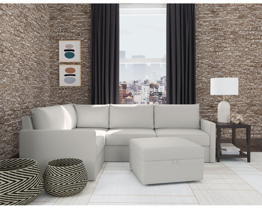 • Ships directly to your door in eleven boxes, including the seats, backs, a corner back, a pair of arms and storage ottoman