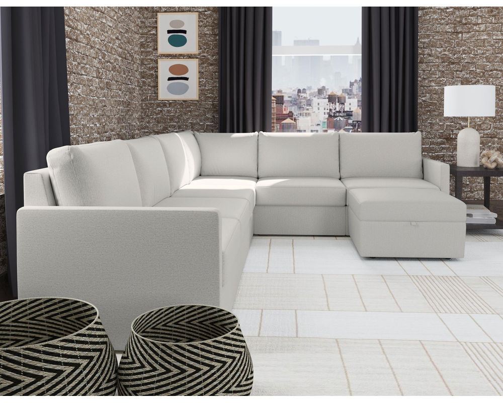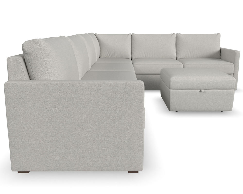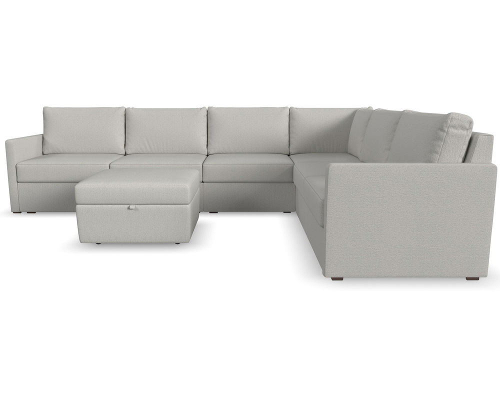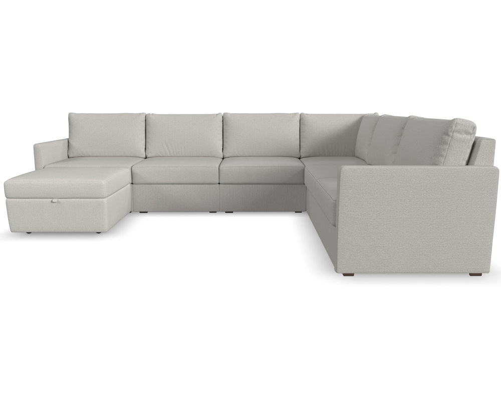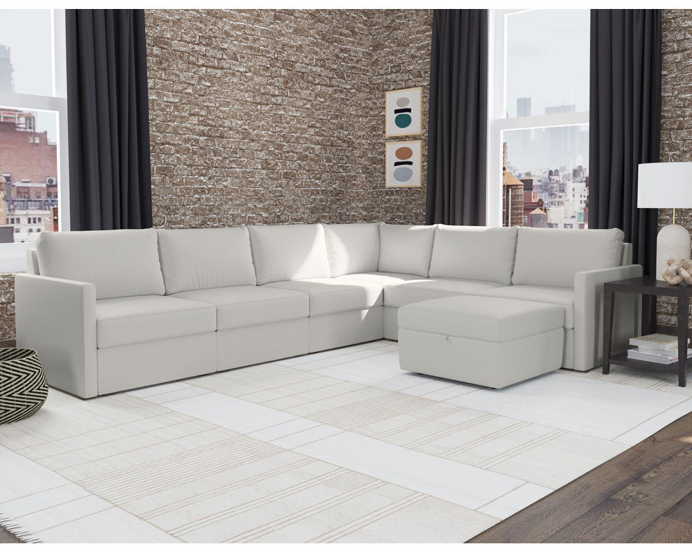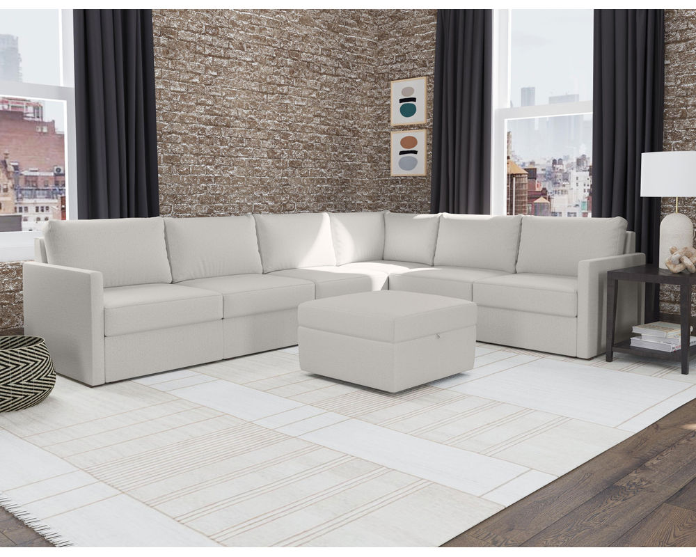 Designed for a lifetime of flexibility, the Flex 6-Seat Sectional and Storage Ottoman provides the ultimate relaxation zone for gatherings and can be easily reconfigured again and again to create the perfect seating arrangement. Built with Blue Steel Spring technology and sustainable, stain-resistant performance fabric, Flex modular seating provides deep-seated, blissful comfort and long-lasting livability. And assembly is a breeze with a patented J-bracket “no-tool” method that takes minutes, rather than hours.