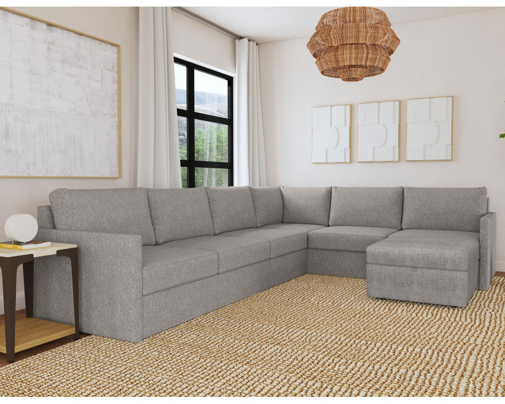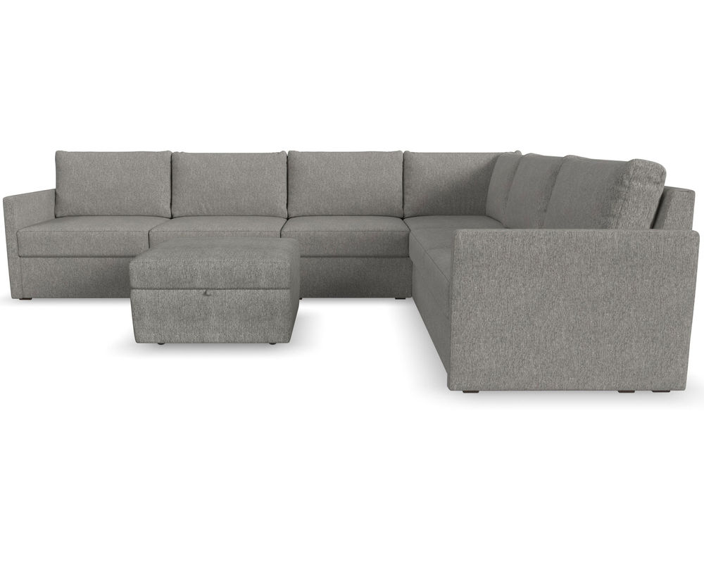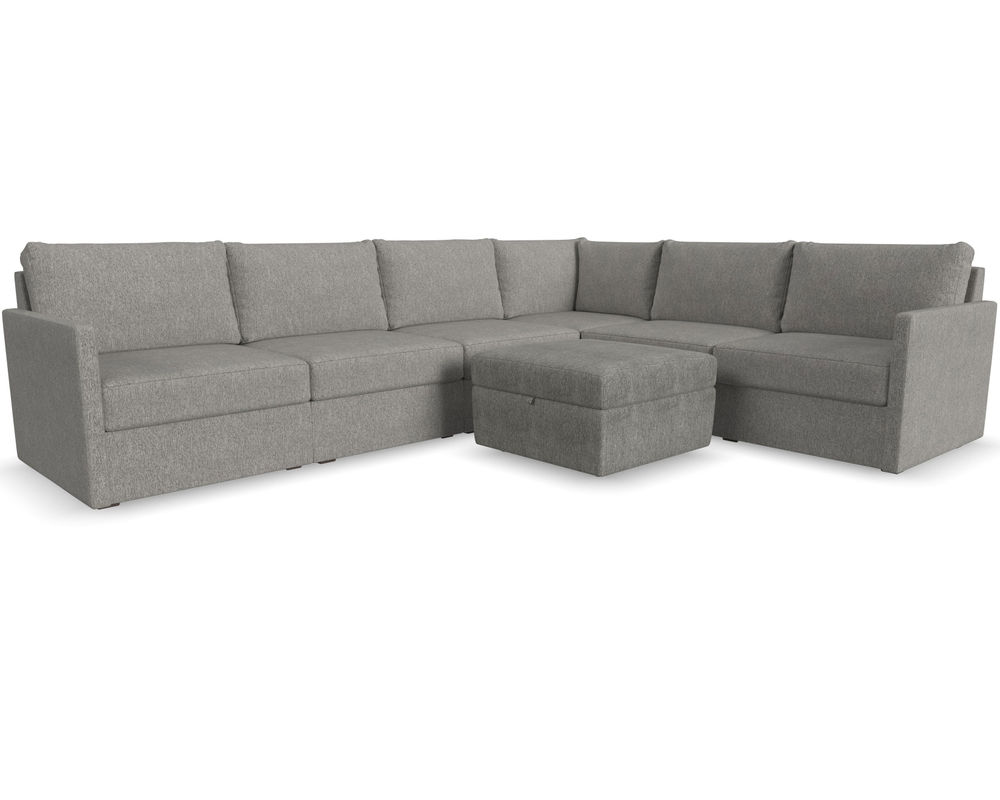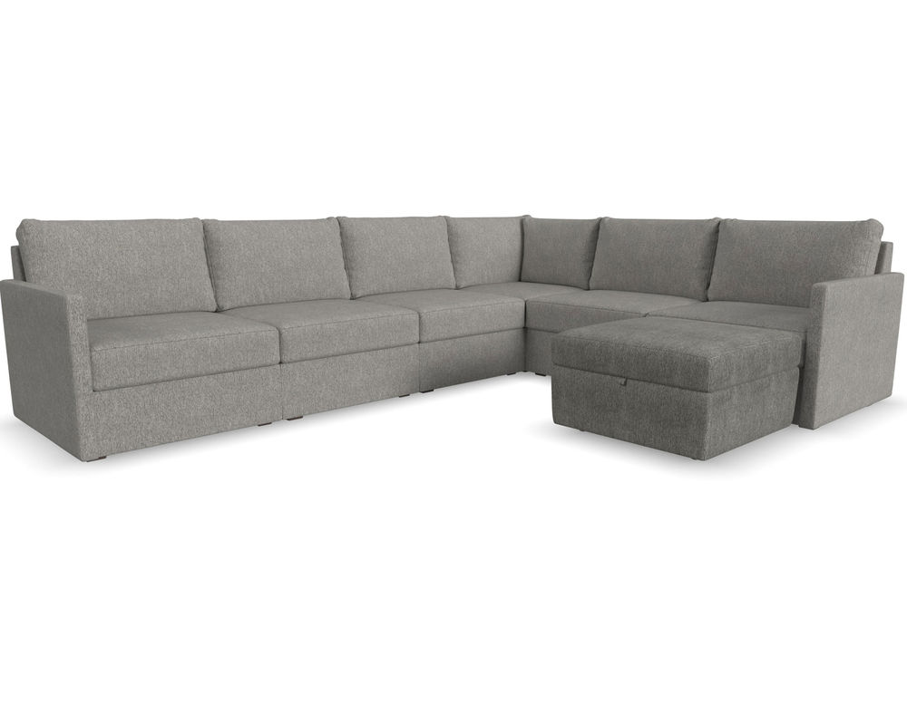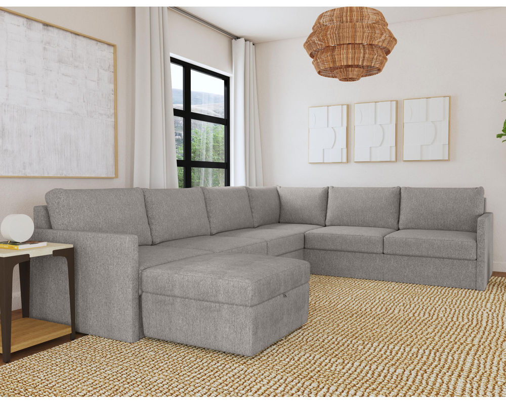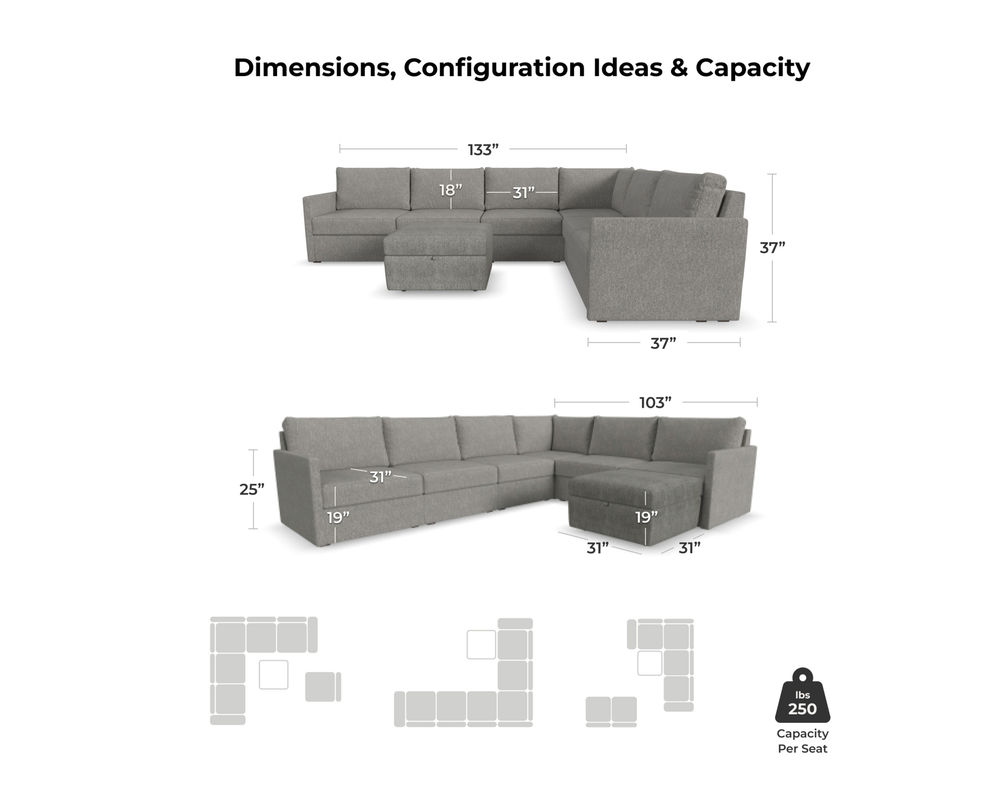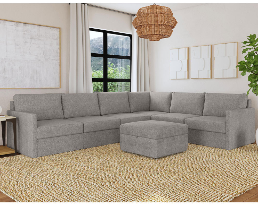 Designed for a lifetime of flexibility, the Flex 6-Seat Sectional and Storage Ottoman provides the ultimate relaxation zone for gatherings and can be easily reconfigured again and again to create the perfect seating arrangement. Built with Blue Steel Spring technology and sustainable, stain-resistant performance fabric, Flex modular seating provides deep-seated, blissful comfort and long-lasting livability. And assembly is a breeze with a patented J-bracket “no-tool” method that takes minutes, rather than hours.