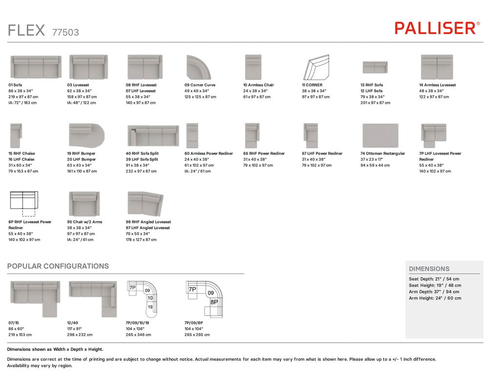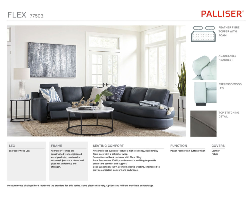 Distinctive and beautiful, the Palliser Flex 77503 Sofa is the perfect example of style and luxury working in perfect harmony. Invoking a sleek contemporary design and a set of wonderful comfort features, this piece is the perfect addition to nearly any home decor. Additionally, keeping with Palliser's tradition of customization, this piece can be built in your choice of fabrics or leathers across a broad range of colors.