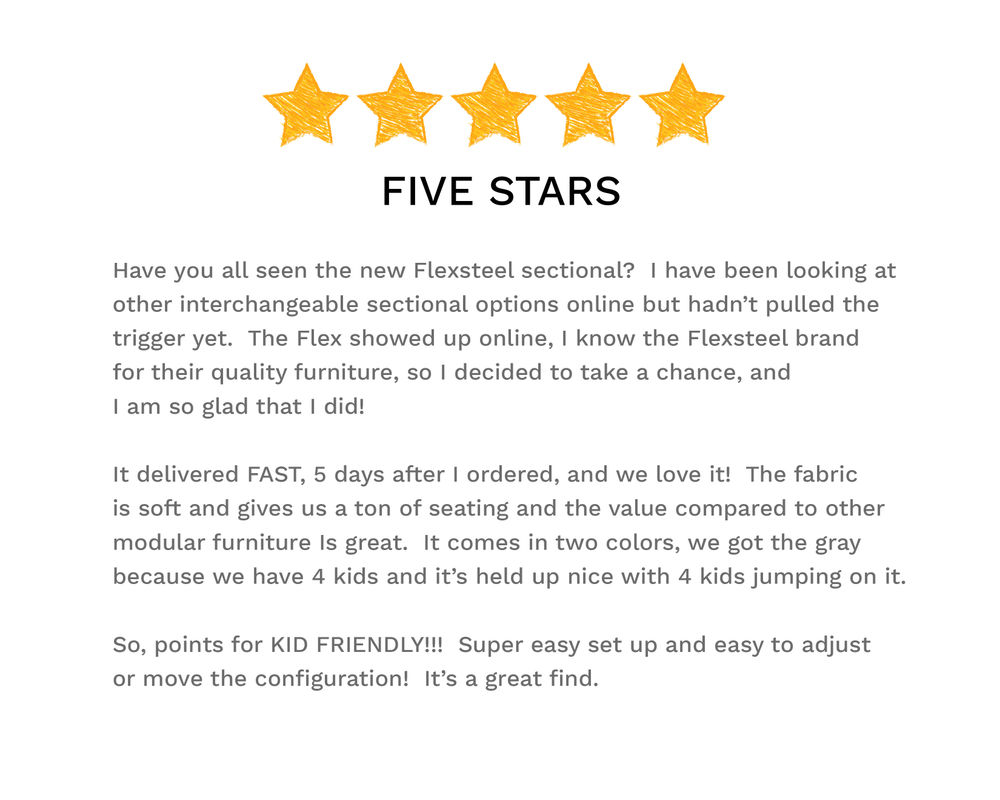 Designed for a lifetime of flexibility, the Flex chair creates a perfect spot to sit solo or can be combined with other Flex modular seating when it’s time to expand. Built with Blue Steel Spring technology and sustainable stain-resistant performance fabric, the Flex chair provides deep-seated, blissful comfort and long-lasting durability. And assembly is a breeze with a patented J-bracket “no-tool” method that takes minutes, rather than hours.