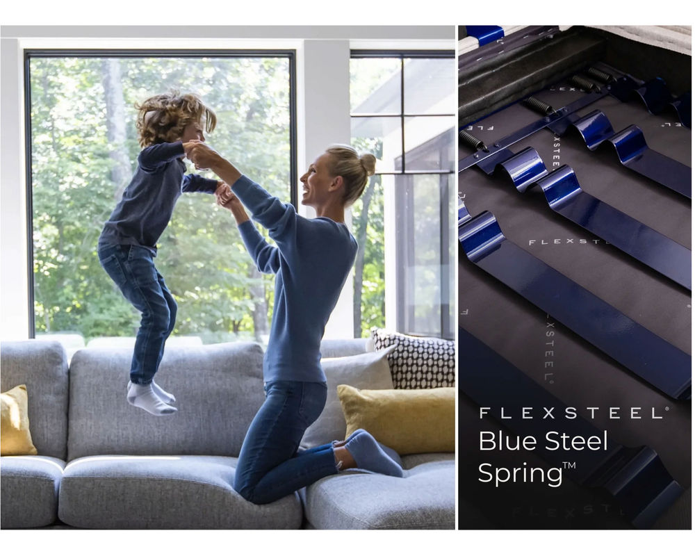 Internal structures of Flexsteel furniture including springs, wood frames, metal bases, reclining mechanisms, seat cushion foam and feathers.