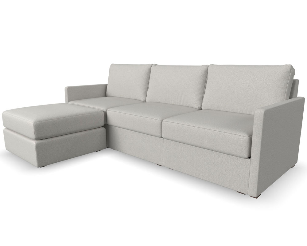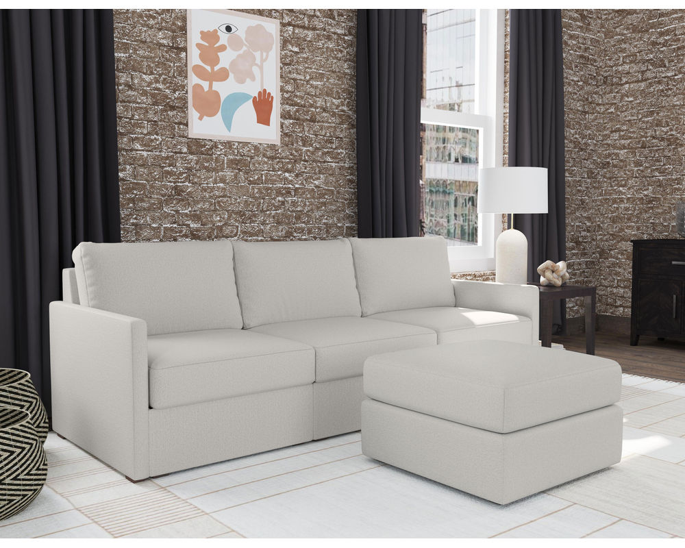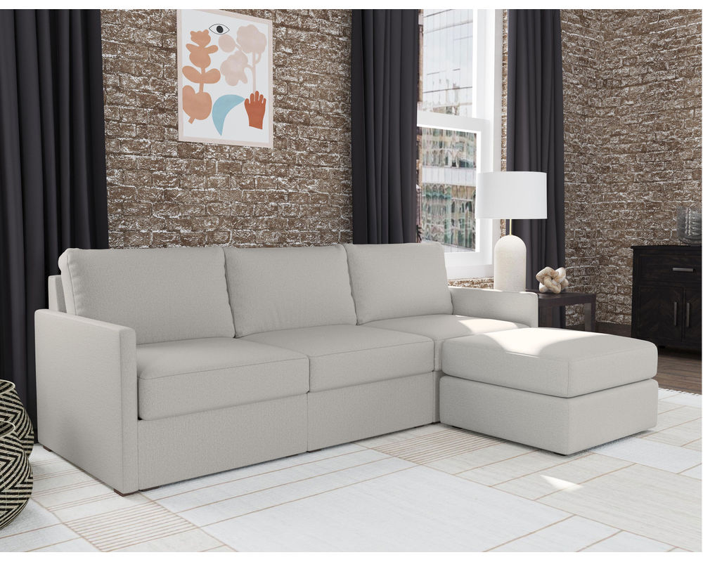 Designed for a lifetime of flexibility, the Flex Sofa with Ottoman makes the perfect gathering spot for relaxing and the ottoman can be a standalone piece or pushed up against one end to make a chaise lounge. Easily expand and reconfigure the sofa as needs change. Built with Blue Steel Spring technology and sustainable stain-resistant performance fabric, the Flex sofa provides deep-seated, blissful comfort and long-lasting durability. And assembly is a breeze with a patented J-bracket “no-tool” method that takes minutes, rather than hours.