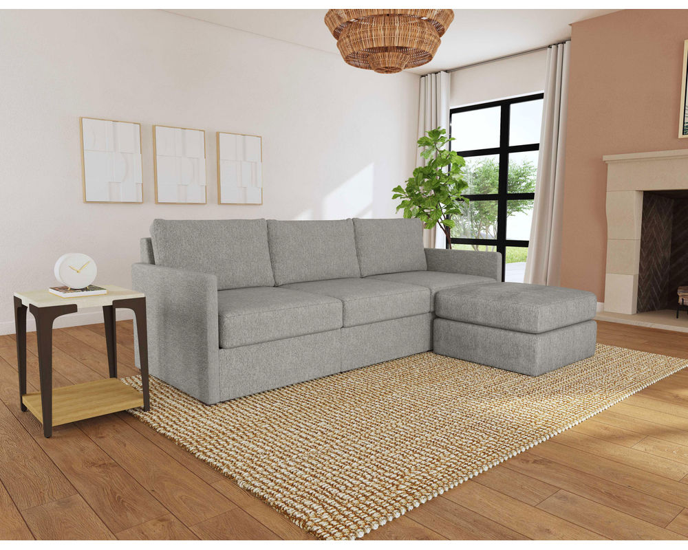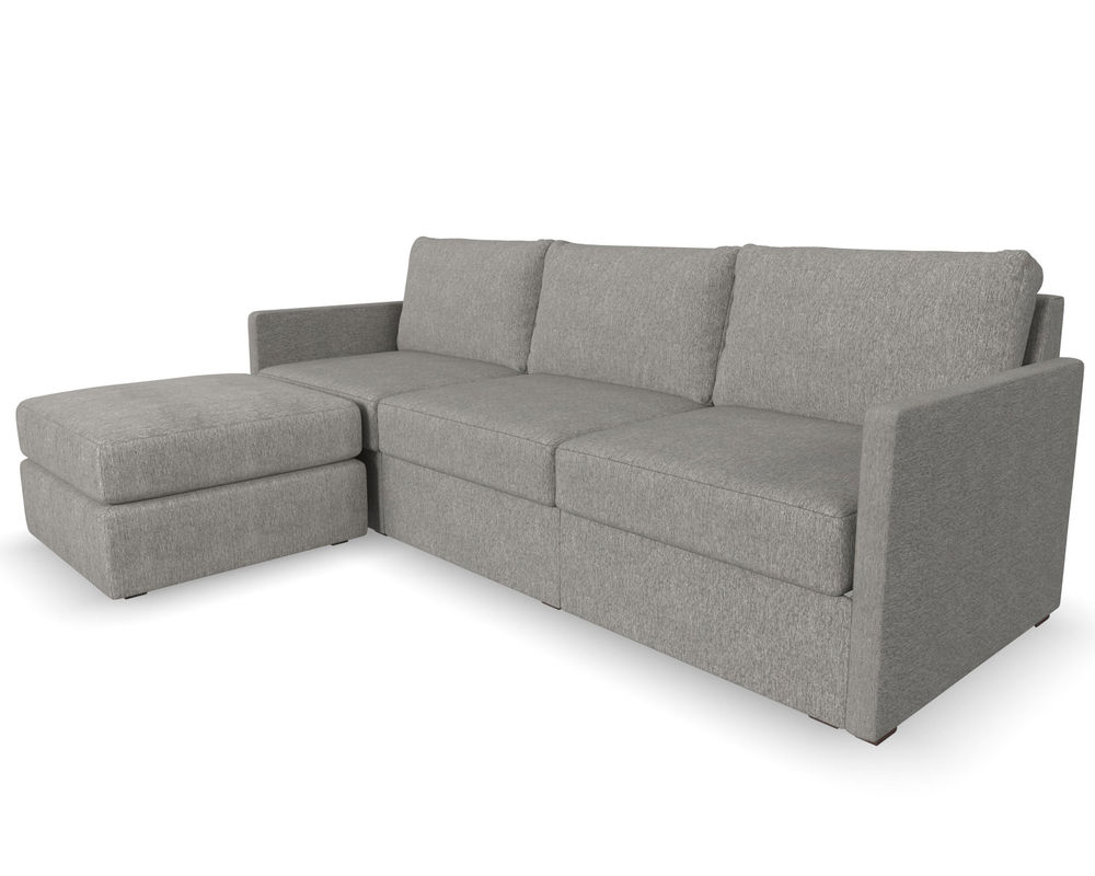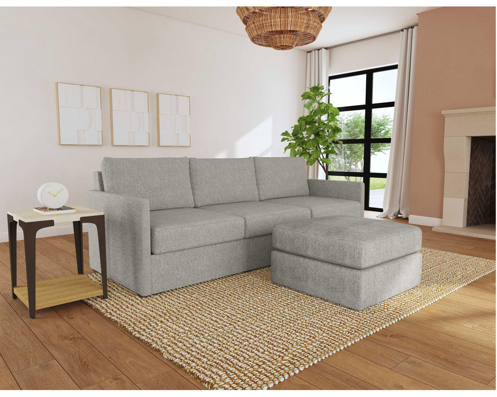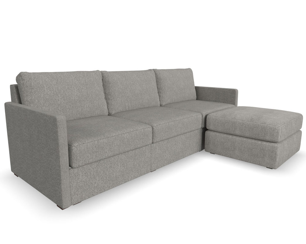 Designed for a lifetime of flexibility, the Flex Sofa with Ottoman makes the perfect gathering spot for relaxing and the ottoman can be a standalone piece or pushed up against one end to make a chaise lounge. Easily expand and reconfigure the sofa as needs change. Built with Blue Steel Spring technology and sustainable stain-resistant performance fabric, the Flex sofa provides deep-seated, blissful comfort and long-lasting durability. And assembly is a breeze with a patented J-bracket “no-tool” method that takes minutes, rather than hours.