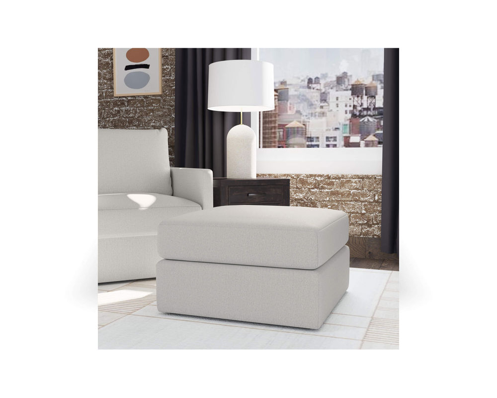 Designed for a lifetime of flexibility, the versatile Flex ottoman makes a comfortable resting place for tired legs or can be combined with other Flex modular components to create additional seating configurations. Durable, sustainable, stain-resistant performance fabric in two color options provides long-lasting livability.