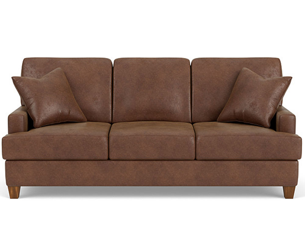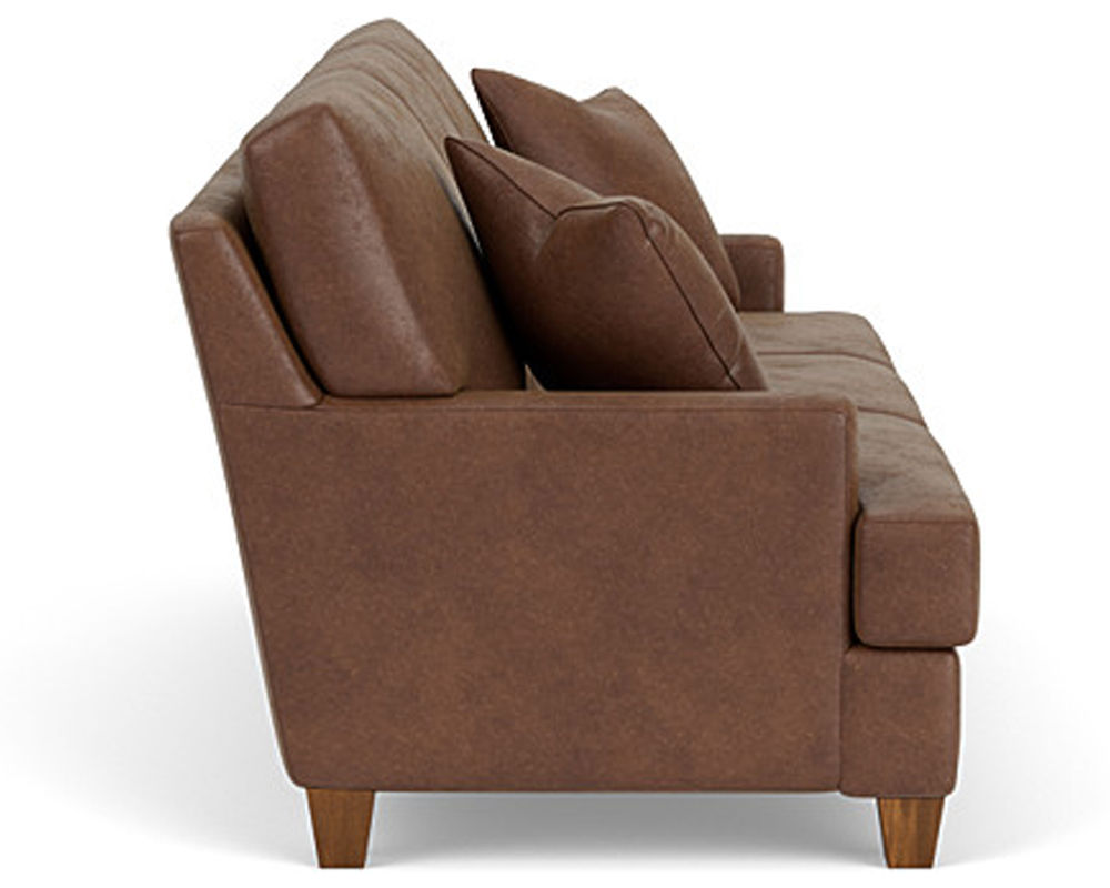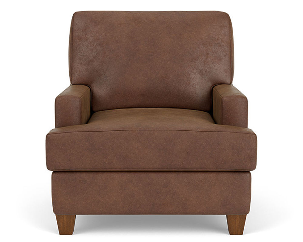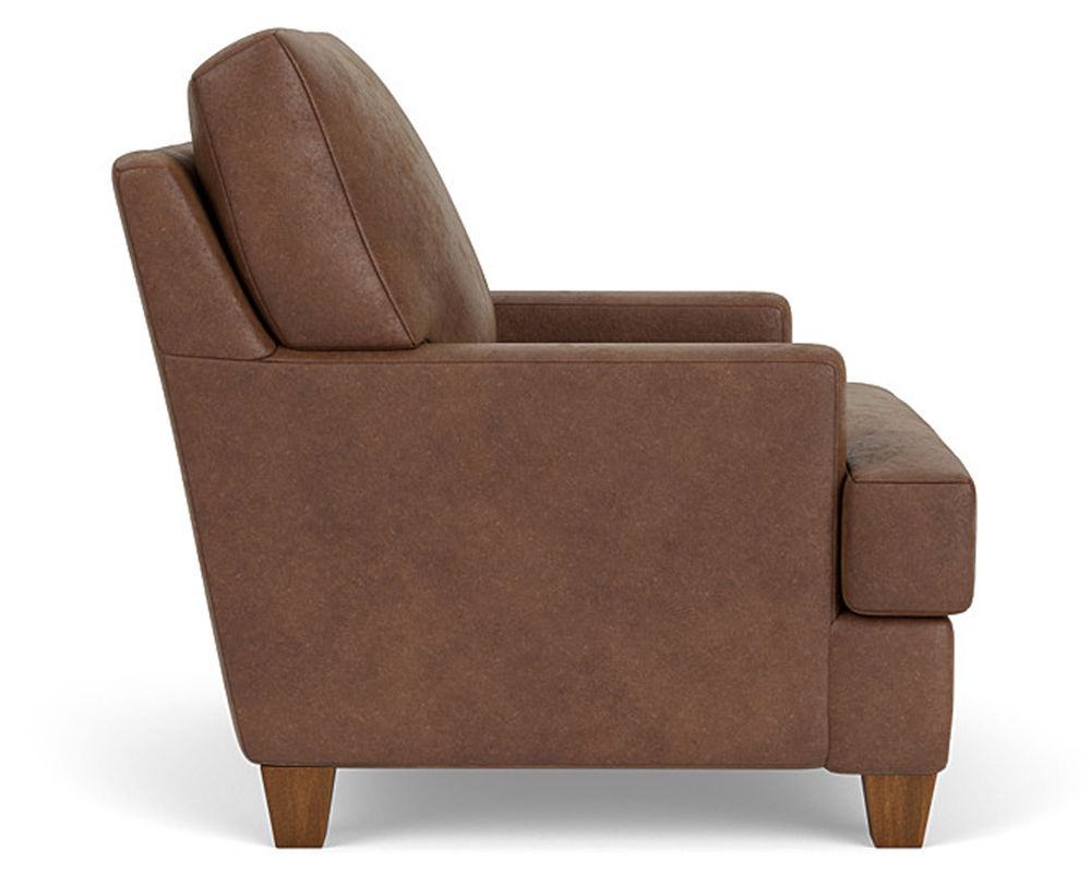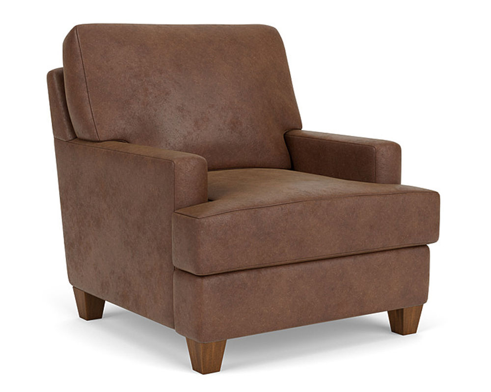 The Flexsteel chair ensures you never have to settle for anything other than the perfect design, no matter your style. Straight track arms provide a clean look. Square tapered legs come in your choice of three distinct wood finishes-Florentine, Valencia, or Urban Renewal-to complement any decor. The removable T-shaped seat cushion offers a distinctive look and added comfort. Sink into the ideal level of support with your choice of our luxury or plush cushion. Complete the look and showcase your lifestyle with hundreds of different fabric choices, including high-performance and sustainable textiles. Superior frame construction and our patented C-Flex Blue Steel Springâ„¢ ensures your Flexsteel Living Room can be enjoyed for years to come.