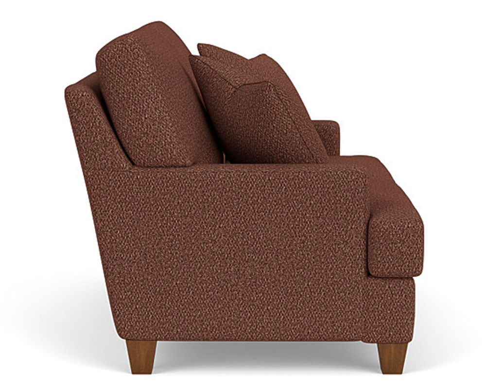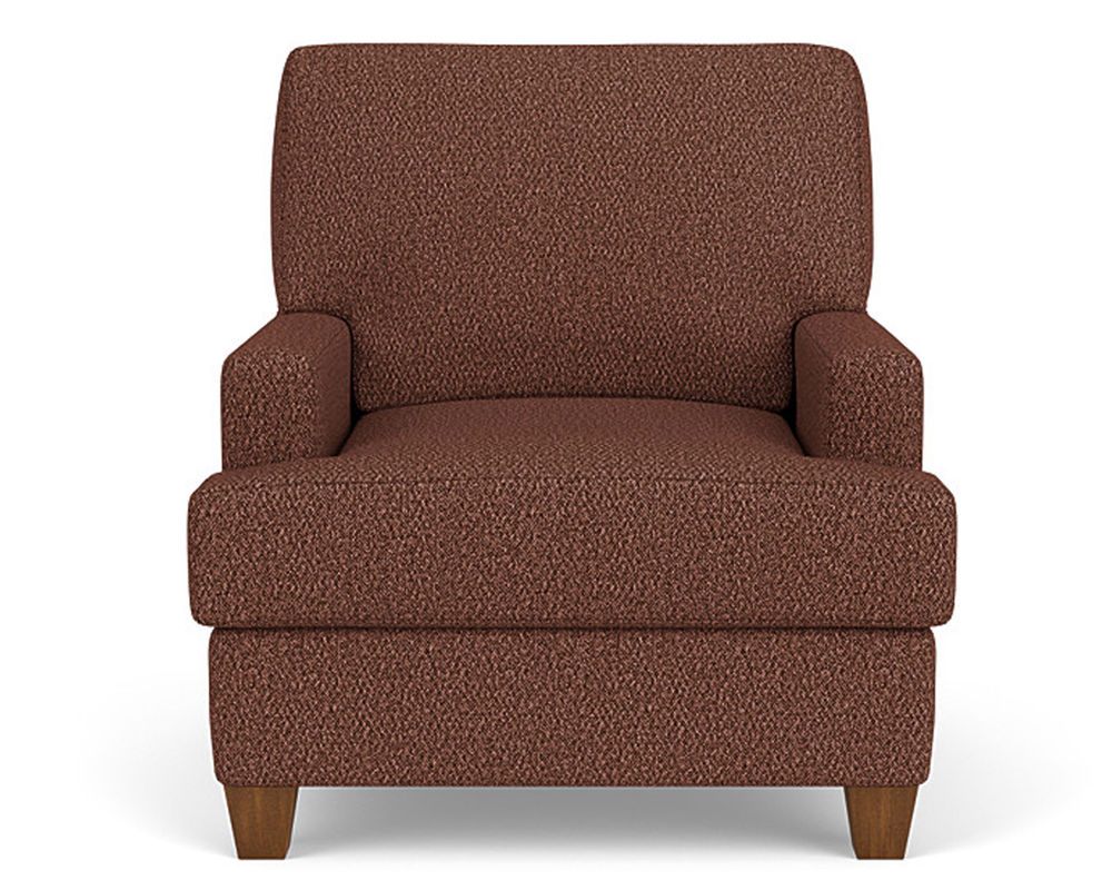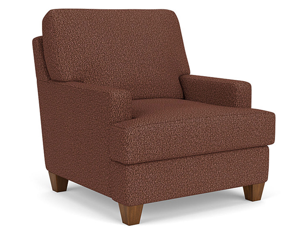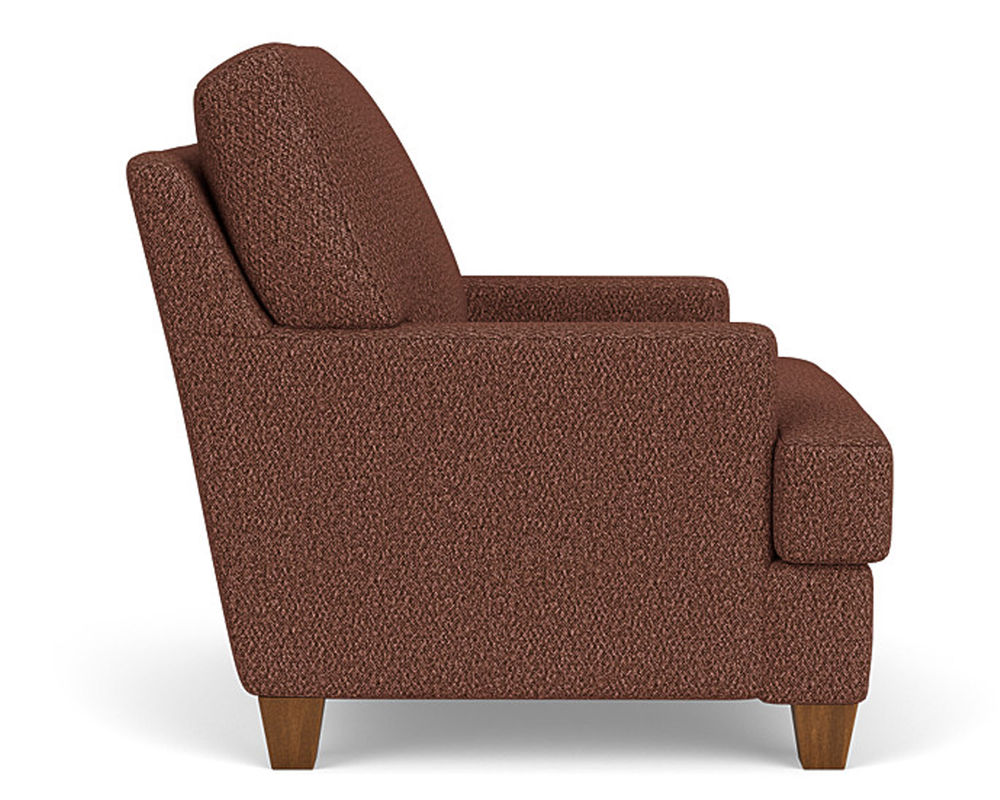 The Flexsteel chair ensures you never have to settle for anything other than the perfect design, no matter your style. Straight track arms provide a clean look. Square tapered legs come in your choice of three distinct wood finishes-Florentine, Valencia, or Urban Renewal-to complement any decor. The removable T-shaped seat cushion offers a distinctive look and added comfort. Sink into the ideal level of support with your choice of our luxury or plush cushion. Complete the look and showcase your lifestyle with hundreds of different fabric choices, including high-performance and sustainable textiles. Superior frame construction and our patented C-Flex Blue Steel Springâ„¢ ensures your Flexsteel Living Room can be enjoyed for years to come.