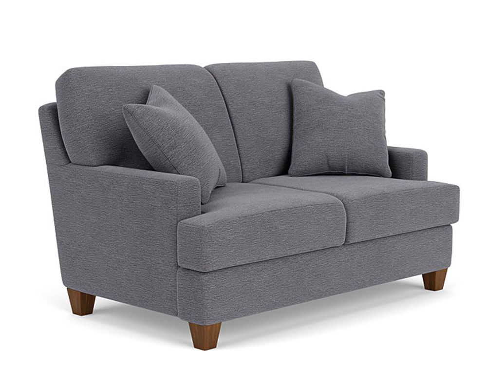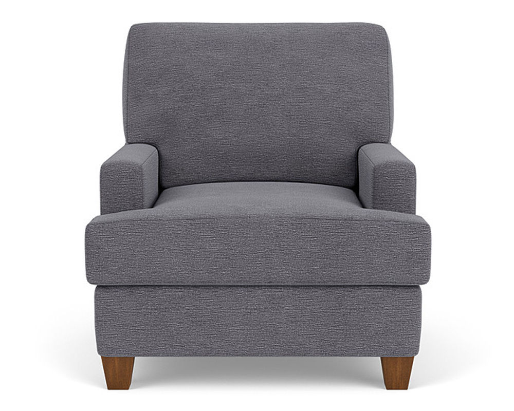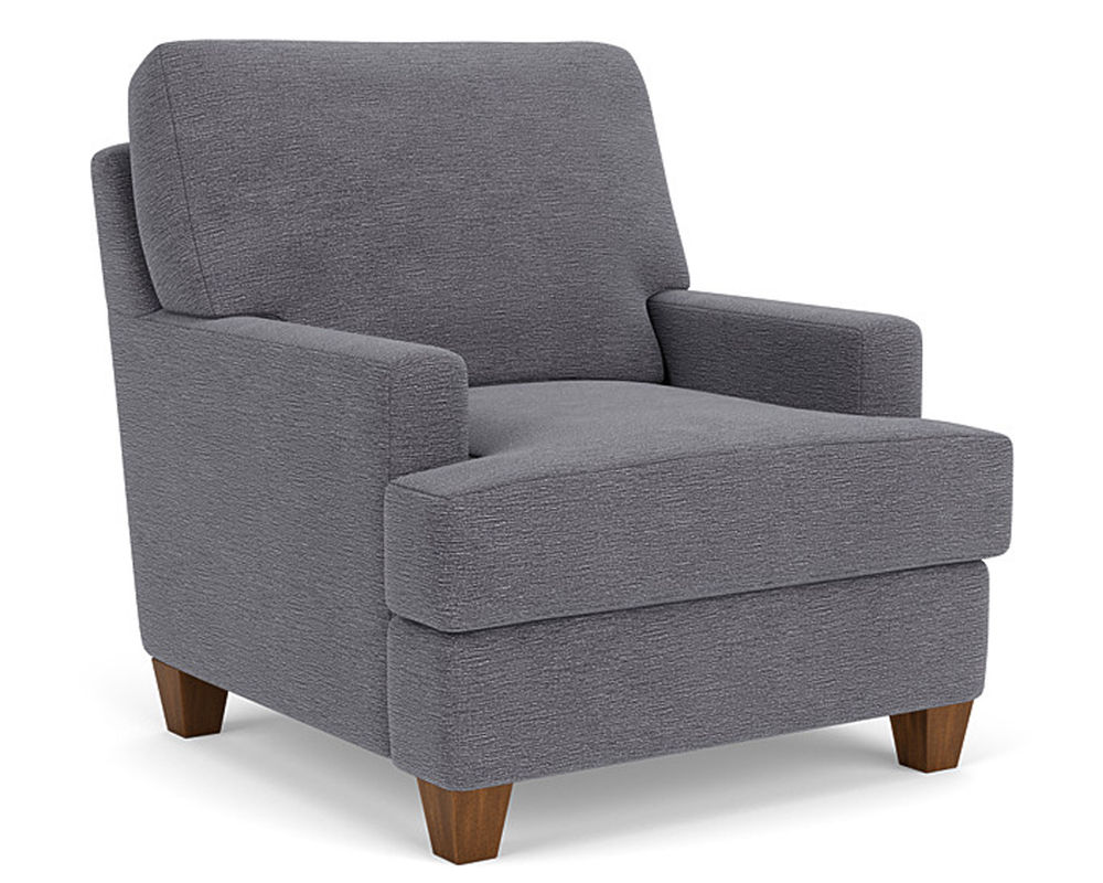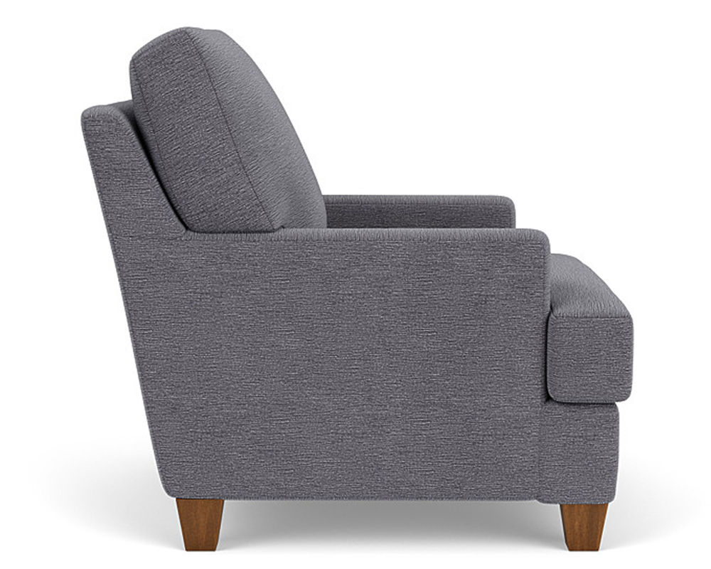 Cozy up with a loved one or claim it all for yourself with the Flexsteel chair that lets you personalize details for the perfect look and feel. Sleek track arms provide a contemporary vibe. Square tapered leg in a choice of three distinct wood finishes-Florentine, Valencia, or Urban Renewal-to complement any decor. The removable T-shaped seat cushions offer a distinctive look and added comfort. Sink into the ideal level of support with your choice of our luxury or plush cushions. Complete the look and showcase your lifestyle with hundreds of different fabric choices, including high-performance and sustainable textiles. Superior frame construction and our patented C-Flex Blue Steel Springâ„¢ ensures your Flexsteel Living Room can be enjoyed for years to come.