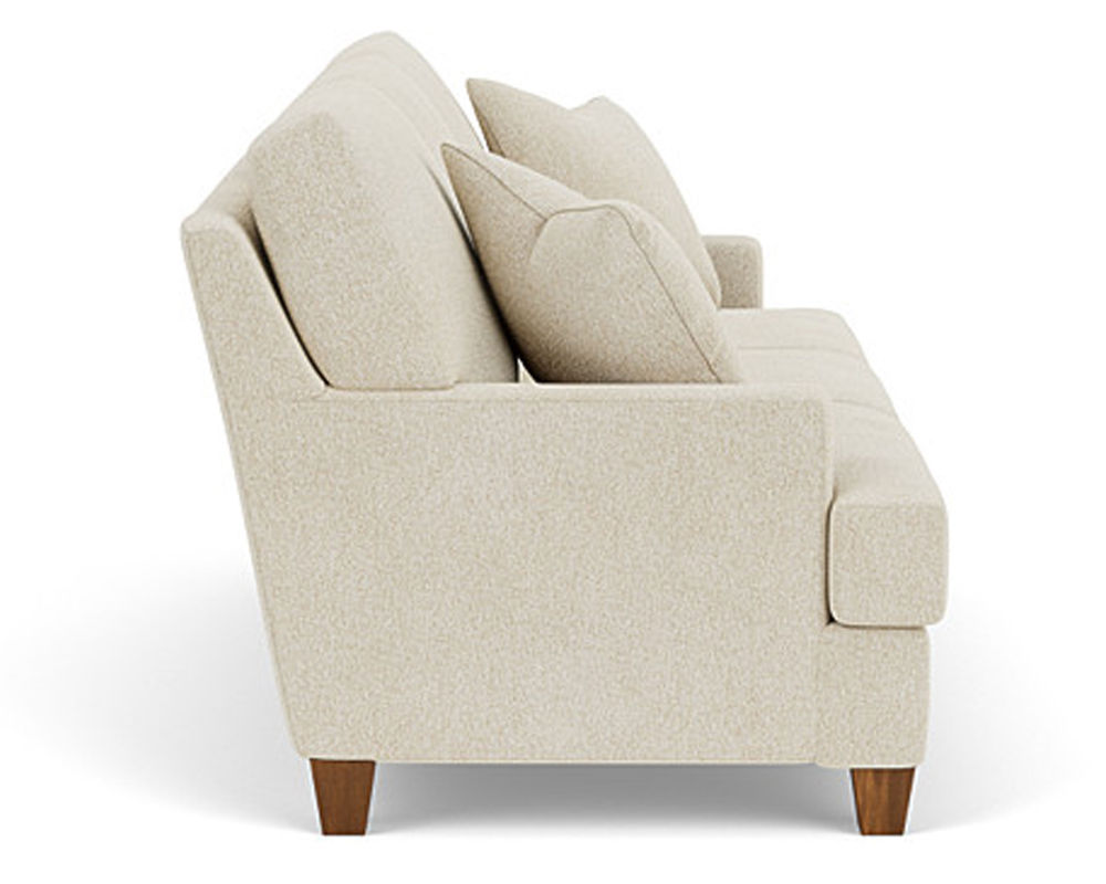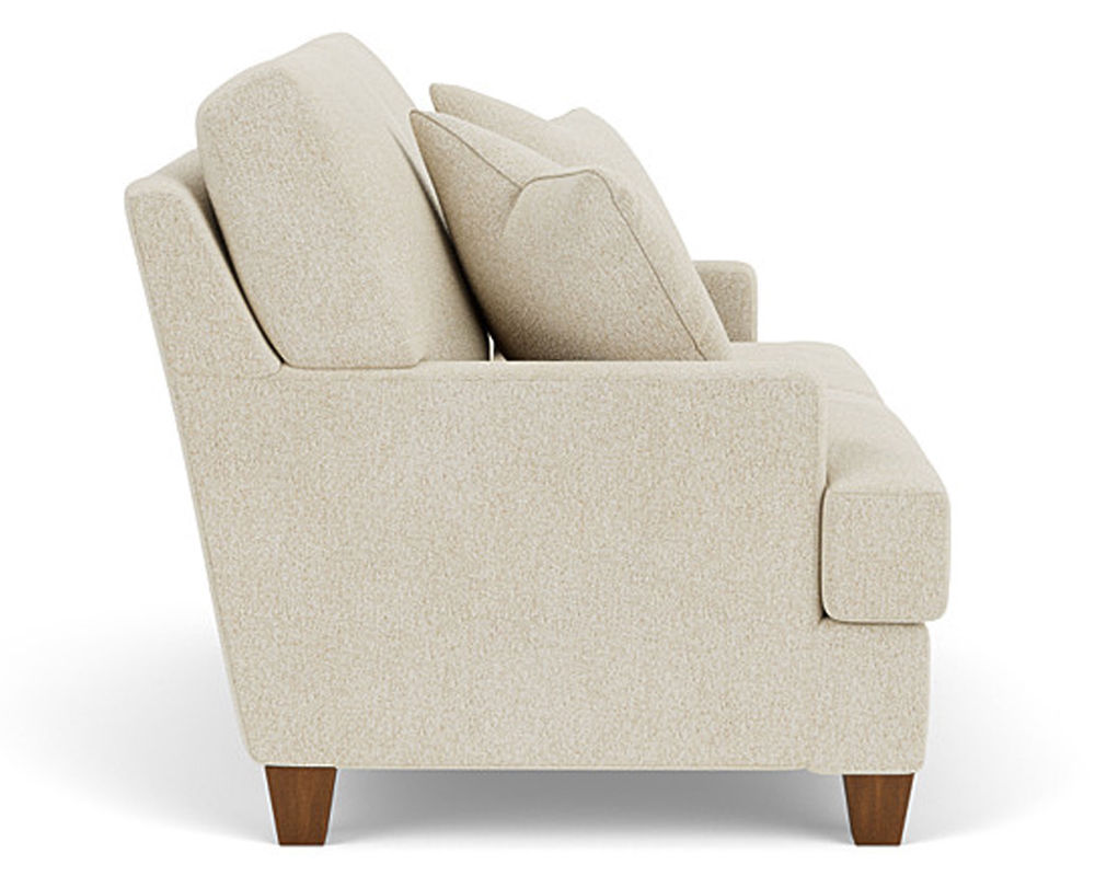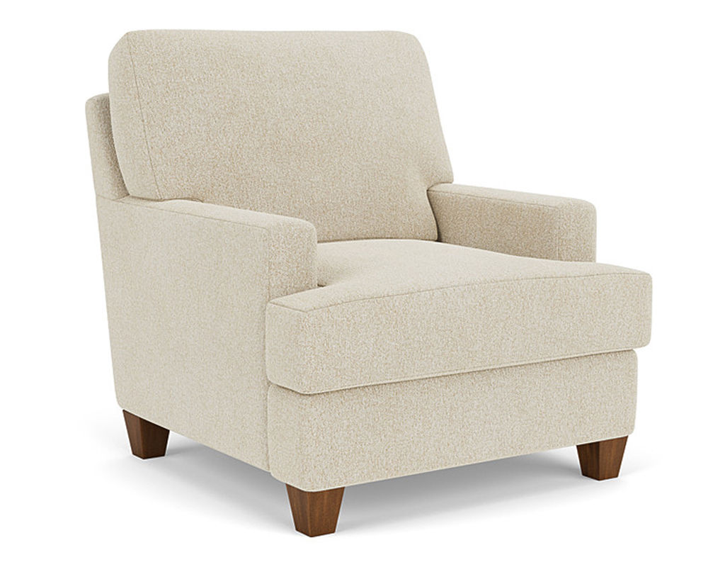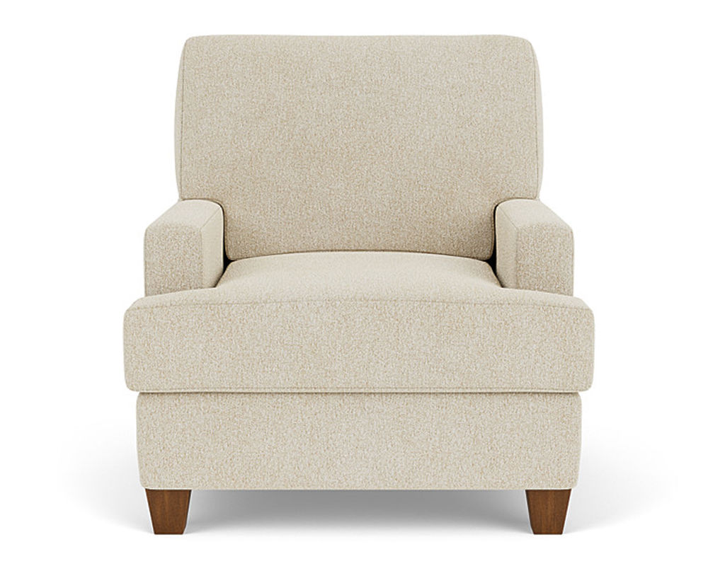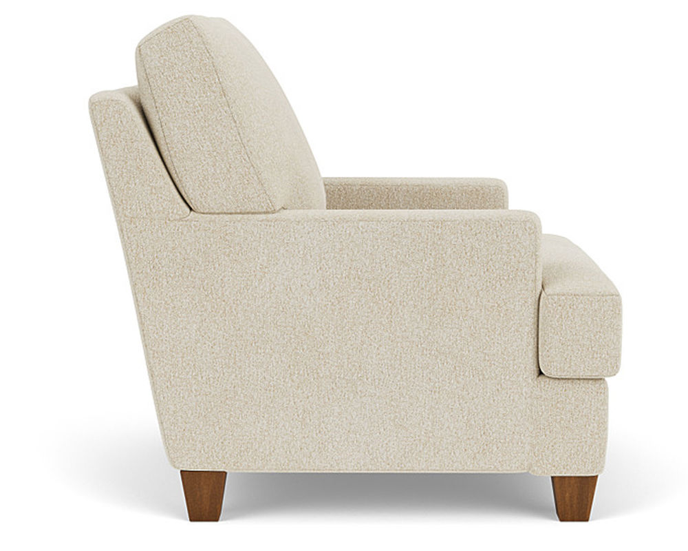 The Flexsteel chair ensures you never have to settle for anything other than the perfect design, no matter your style. Straight track arms provide a clean look. Square tapered legs come in your choice of three distinct wood finishes-Florentine, Valencia, or Urban Renewal-to complement any decor. The removable T-shaped seat cushion offers a distinctive look and added comfort. Sink into the ideal level of support with your choice of our luxury or plush cushion. Complete the look and showcase your lifestyle with hundreds of different fabric choices, including high-performance and sustainable textiles. Superior frame construction and our patented C-Flex Blue Steel Springâ„¢ ensures your Flexsteel Living Room can be enjoyed for years to come.